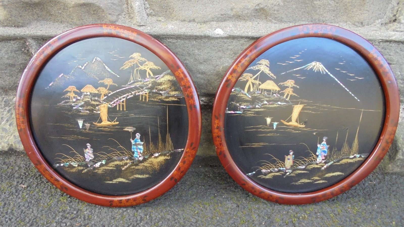 Pair of Antique Oriental Lacquered Chinoiserie Panels c.1900