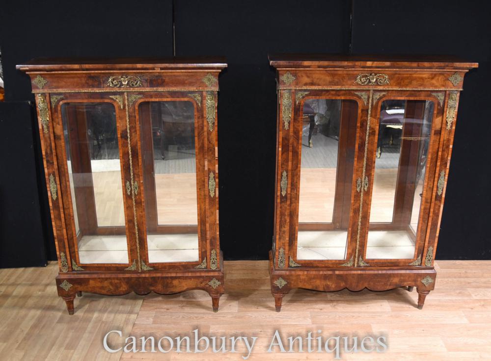 Pair of Antique Pier Cabinets - English Burr Walnut Victorian c.1890