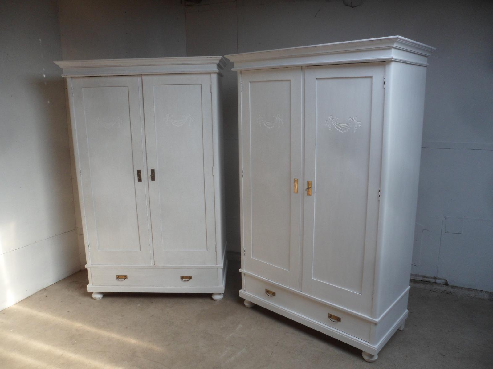 Pair of Antique Pine Art Nouveau Painted Knockdown Wardrobes to wax / paint