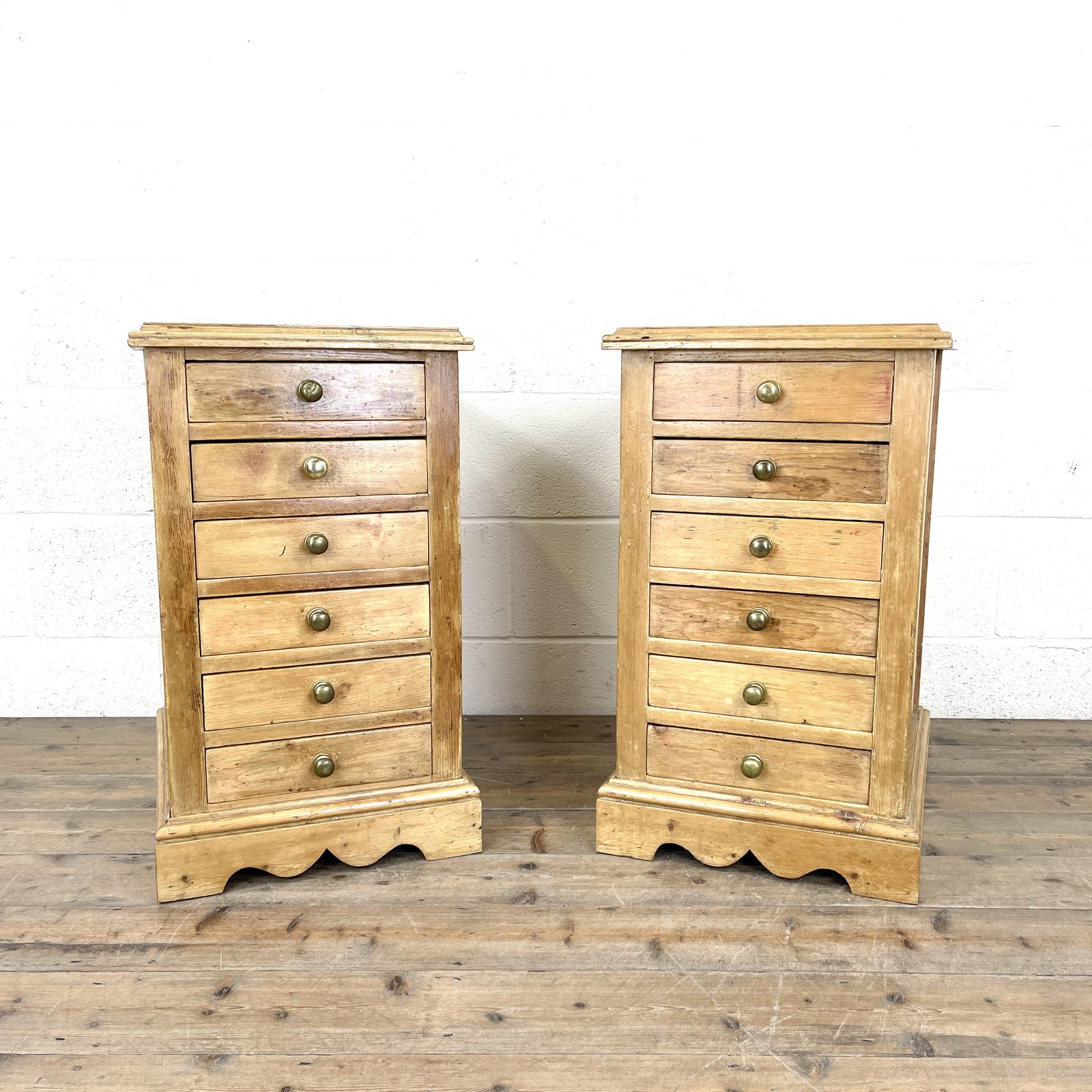 Pair of Antique Pine Bedside Chests with Marble Tops