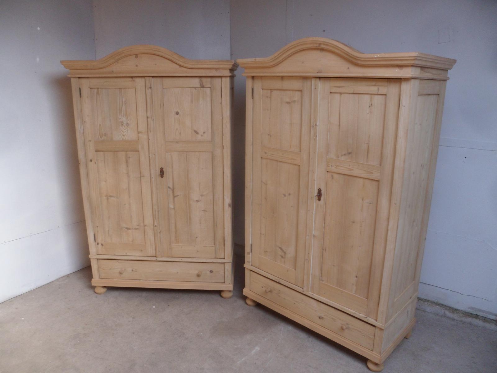 Pair of Antique Pine Cottage / Low Knockdown Wardrobes to wax / paint