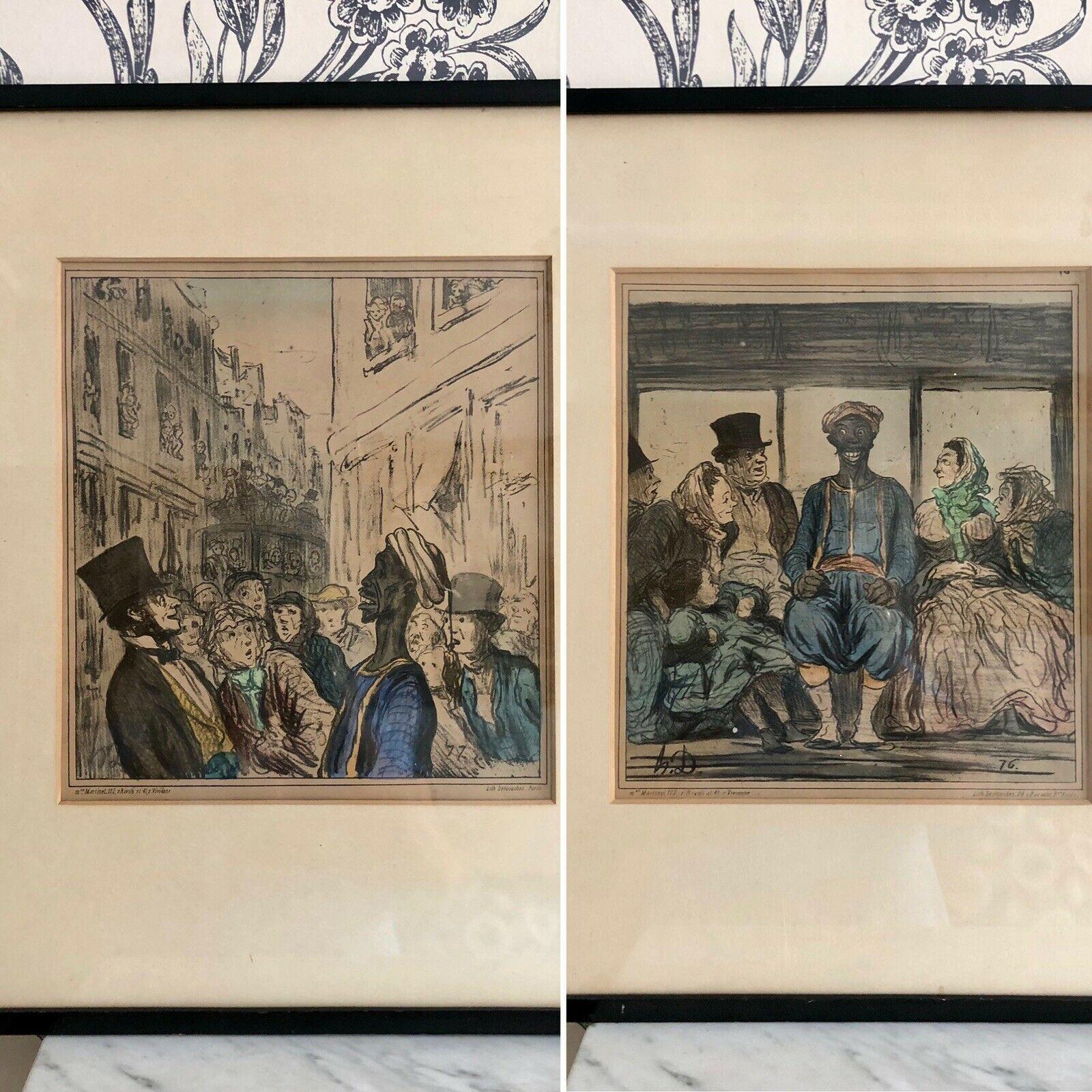 Pair of Antique Prints, Coloured Lithographs by Honore Daumiere Political Satire