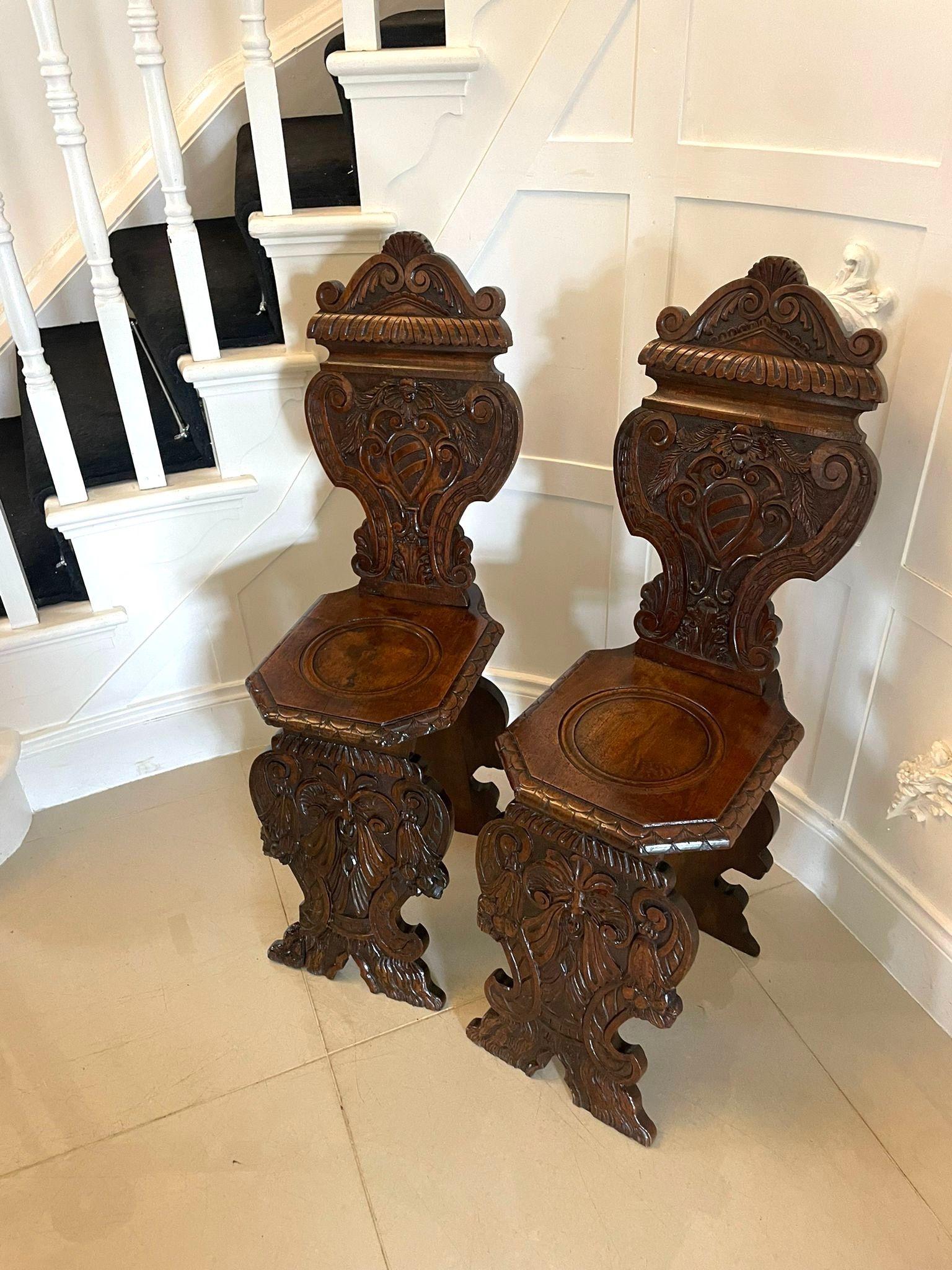 Pair of Antique Quality Carved Walnut Italian Hall Chairs (1 of 12)