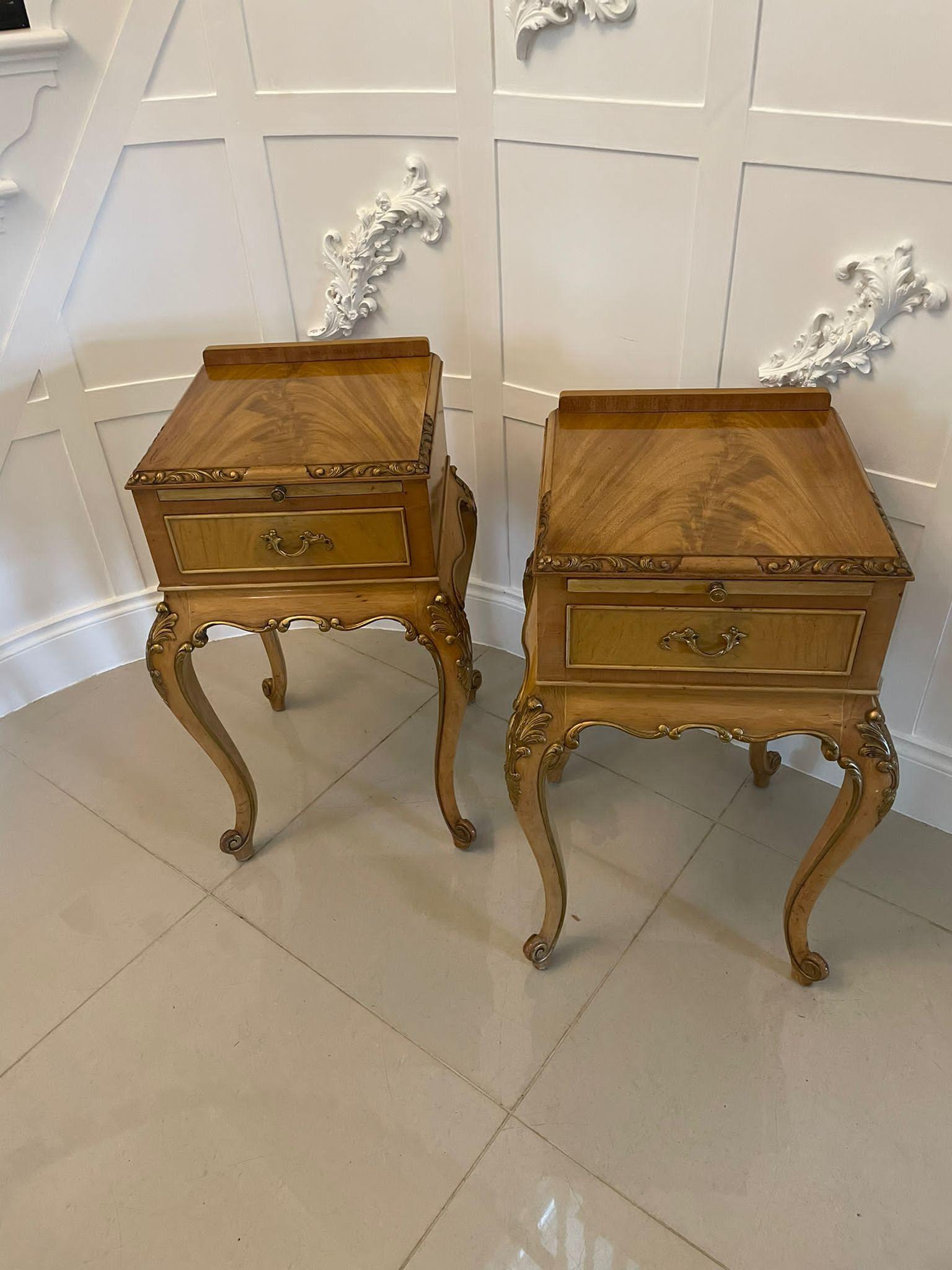 Pair of Antique Quality Figured Walnut Bedside Tables