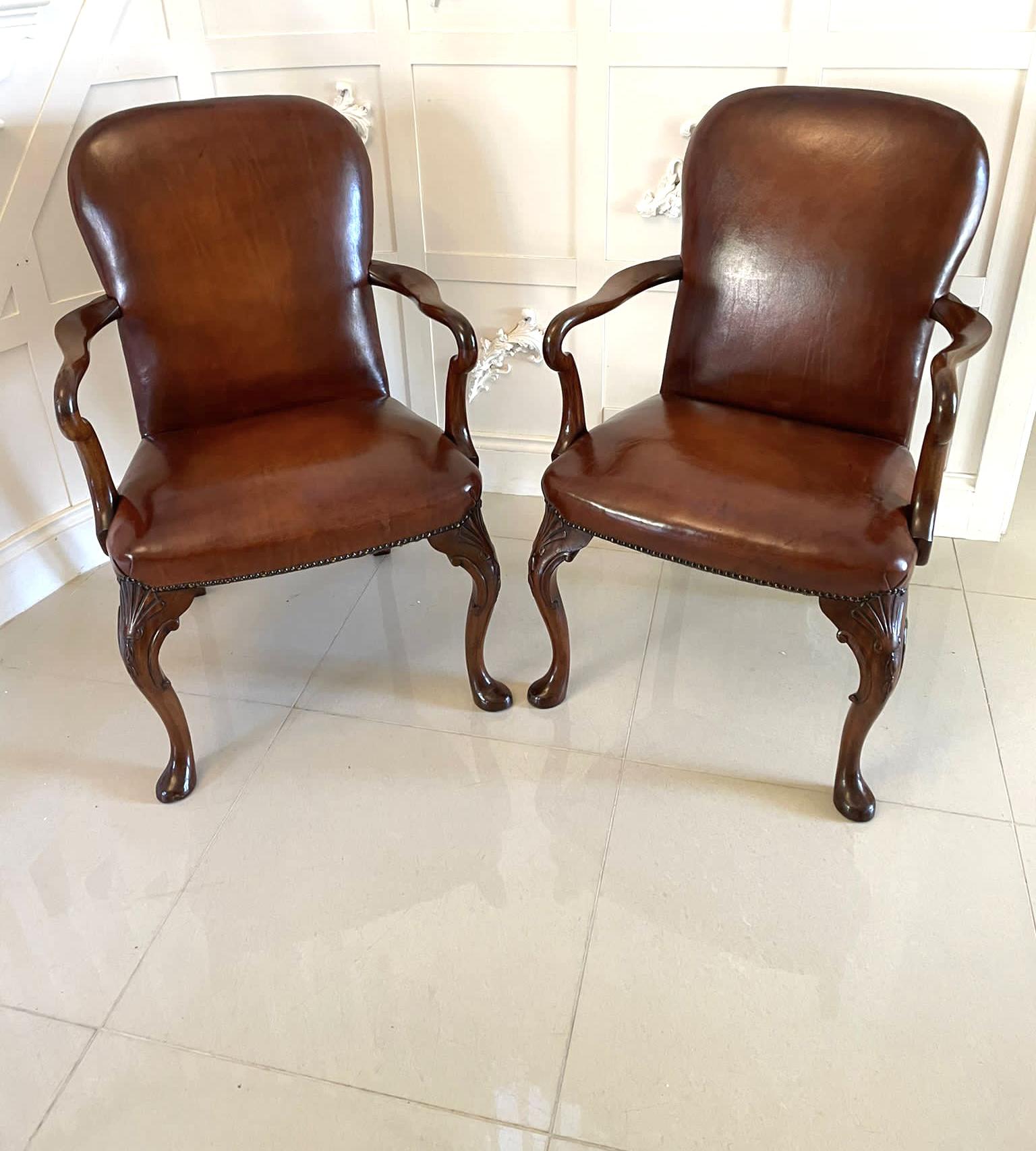 Pair of Antique Quality Leather & Carved Mahogany Desk Chairs