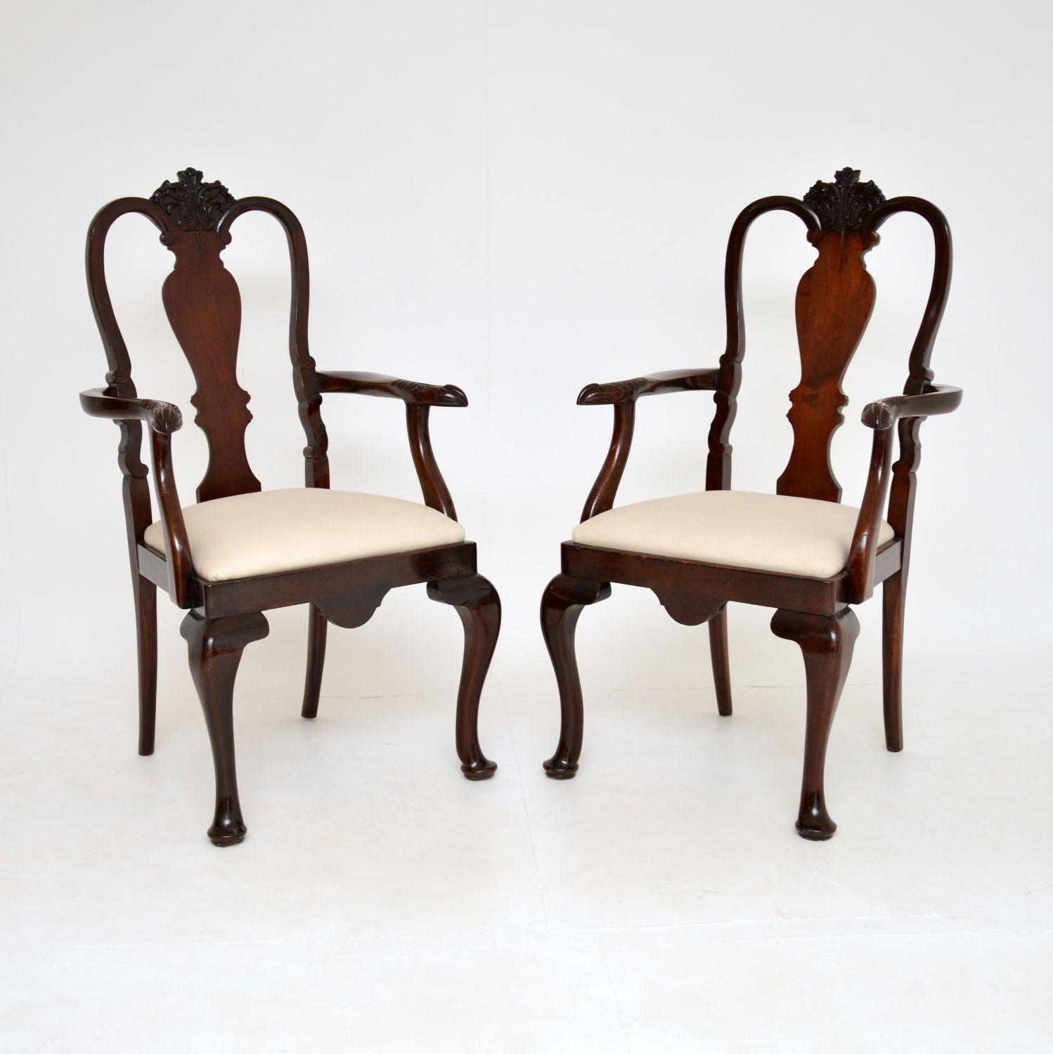 Pair of Antique Queen Anne Style Mahogany Carver Armchairs