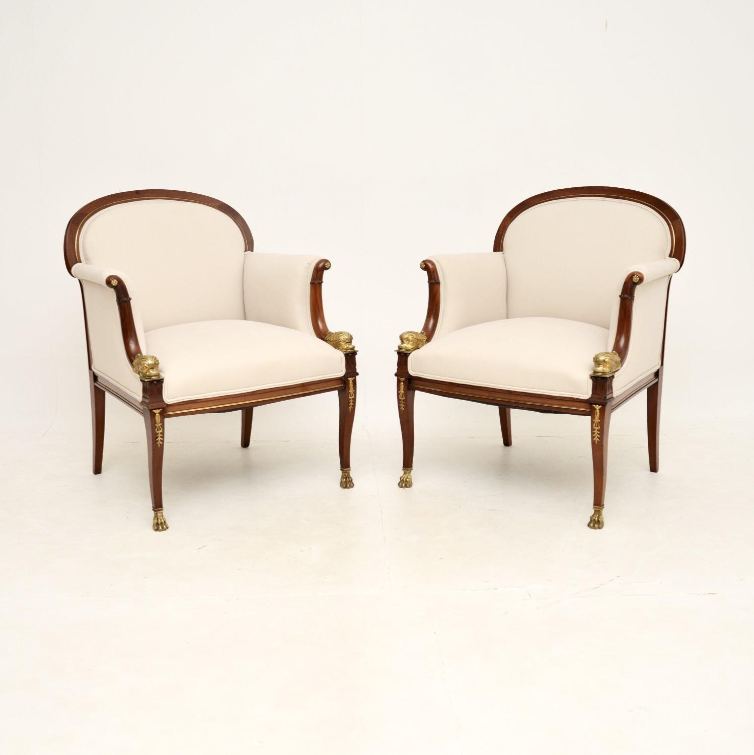 Pair of Antique Regency Style Mahogany & Bronze Armchairs