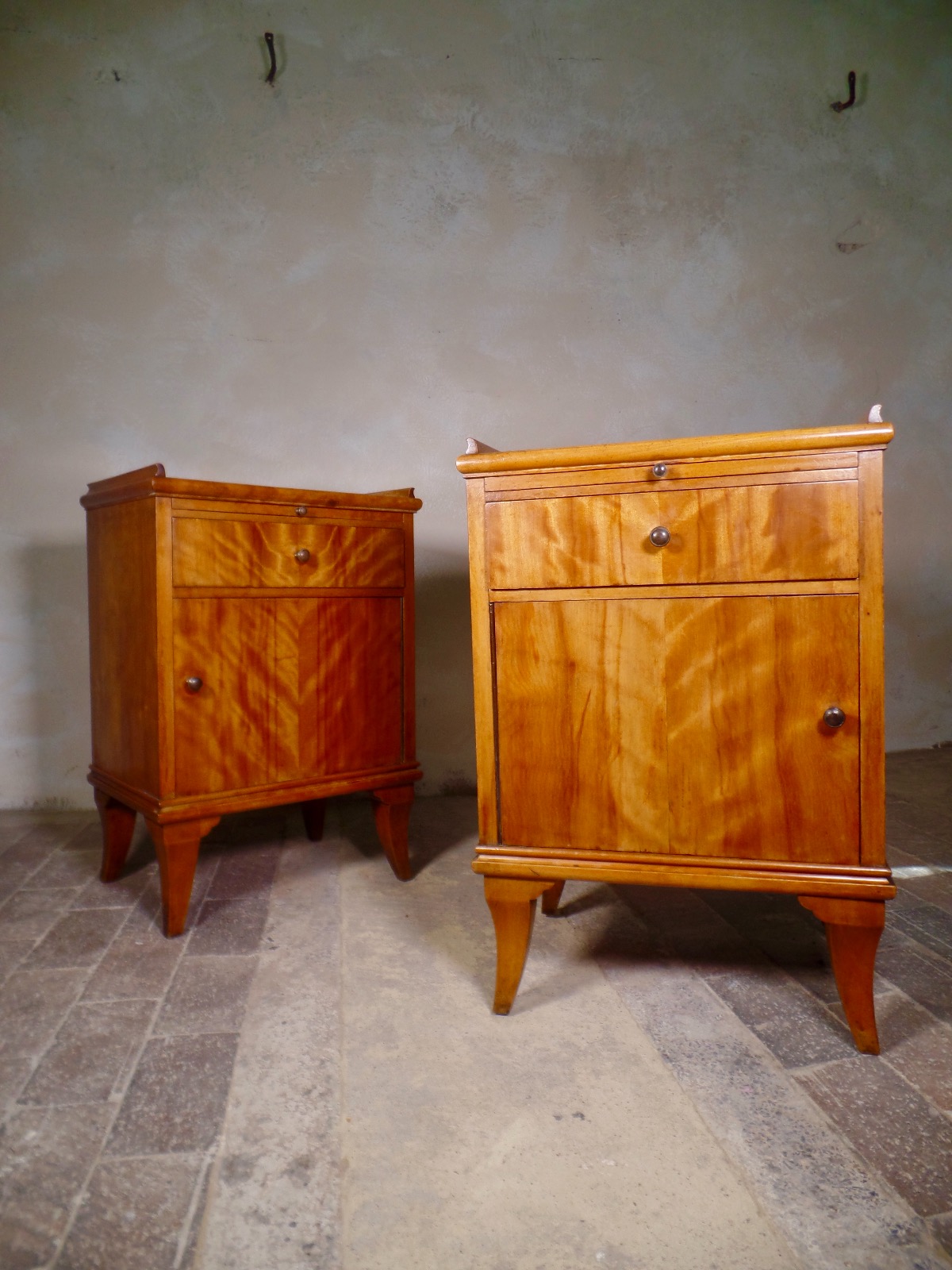 Pair of Antique Satin Birch Biedermeier Style Bedside Cabinets with Drawer