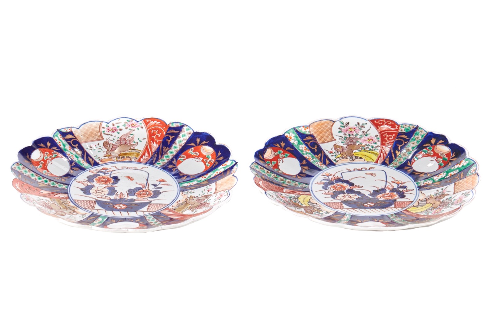 Pair of Antique Scalloped Edge Japanese Imari Porcelain Dishes