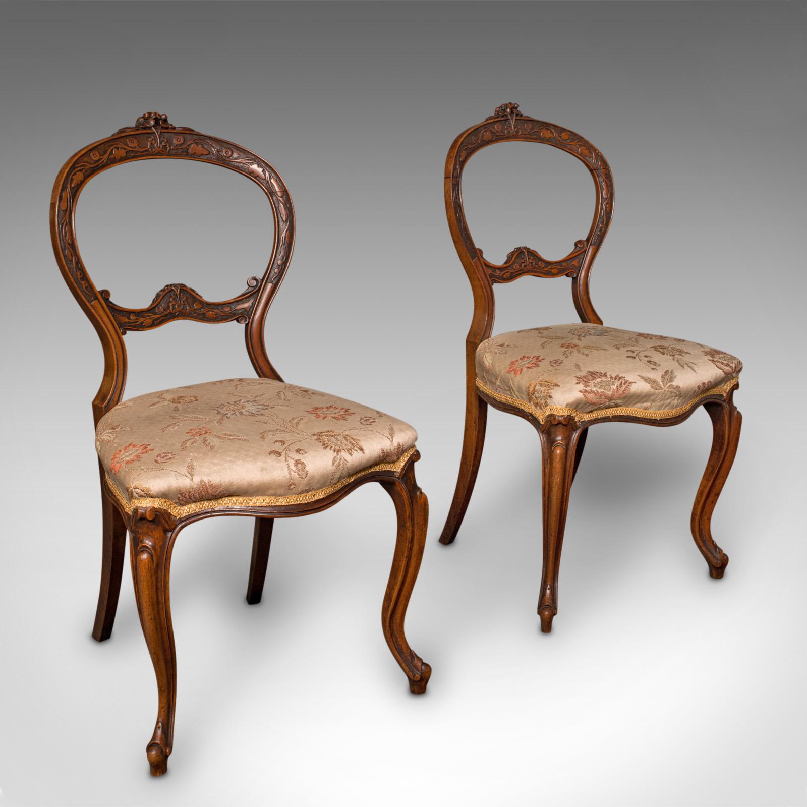 Pair of Antique Side Chairs, English, Walnut, Reception Hall, Seat, Victorian