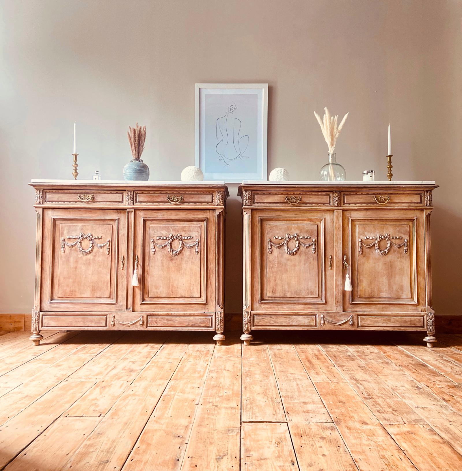 Pair of Antique Sideboards / Marble Cupboards / Buffets