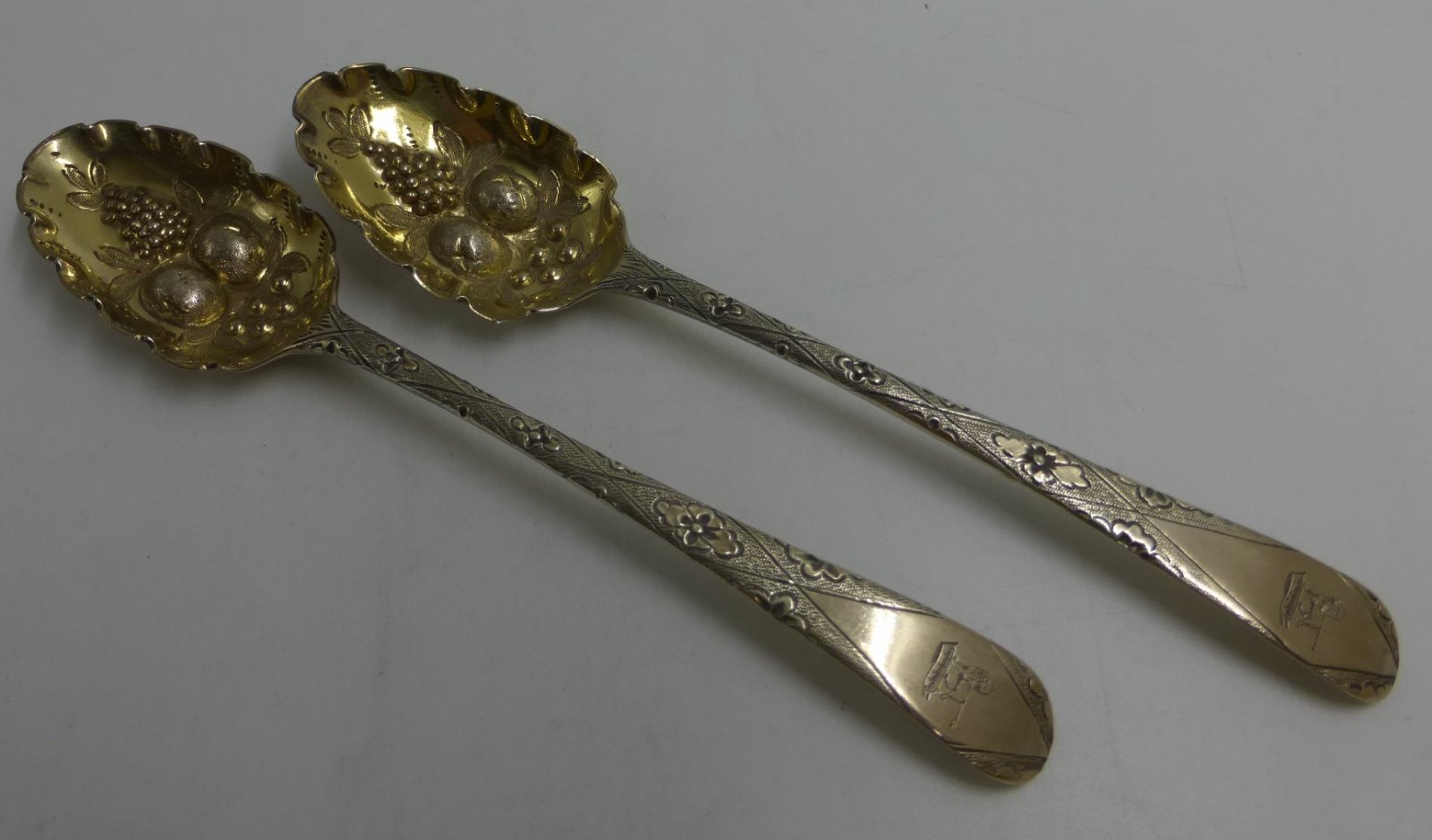 Pair of Antique Silver Berry Spoons - London 1784