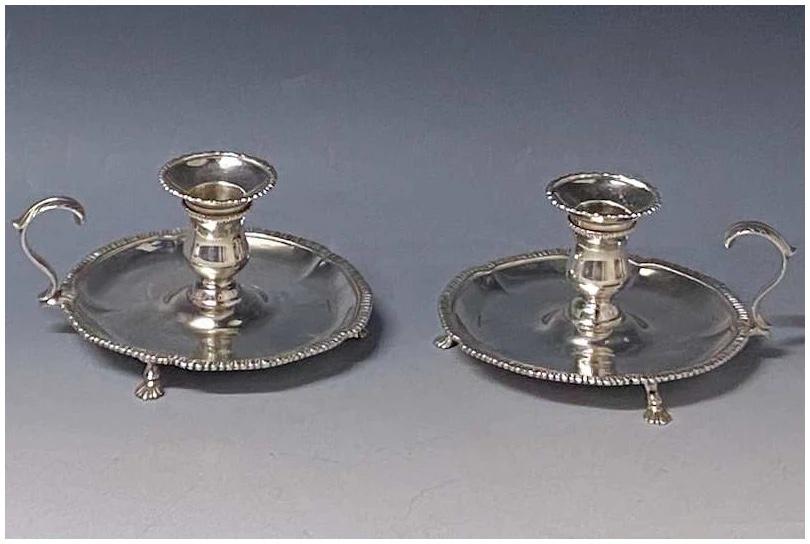 Pair of Antique Silver George III Silver Chambersticks Made in 1771