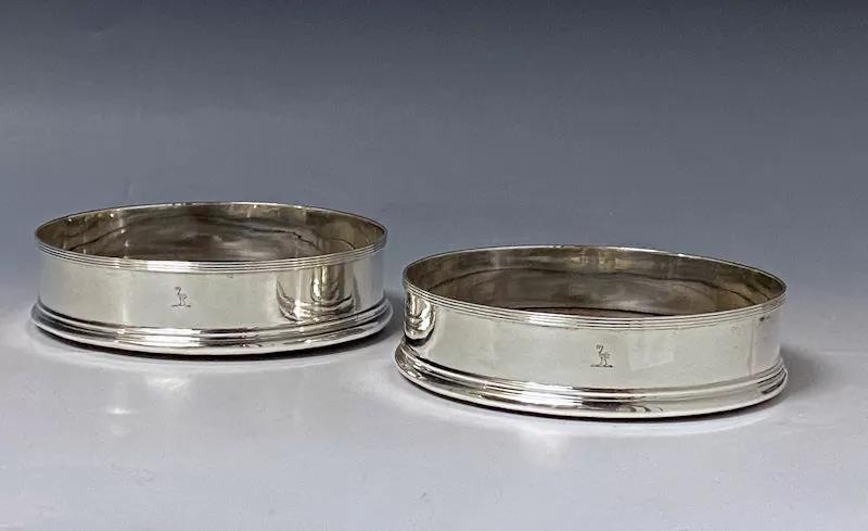 Pair of Antique Silver George III Wine / Decanter Coasters - 1789 with Digby Family Crest