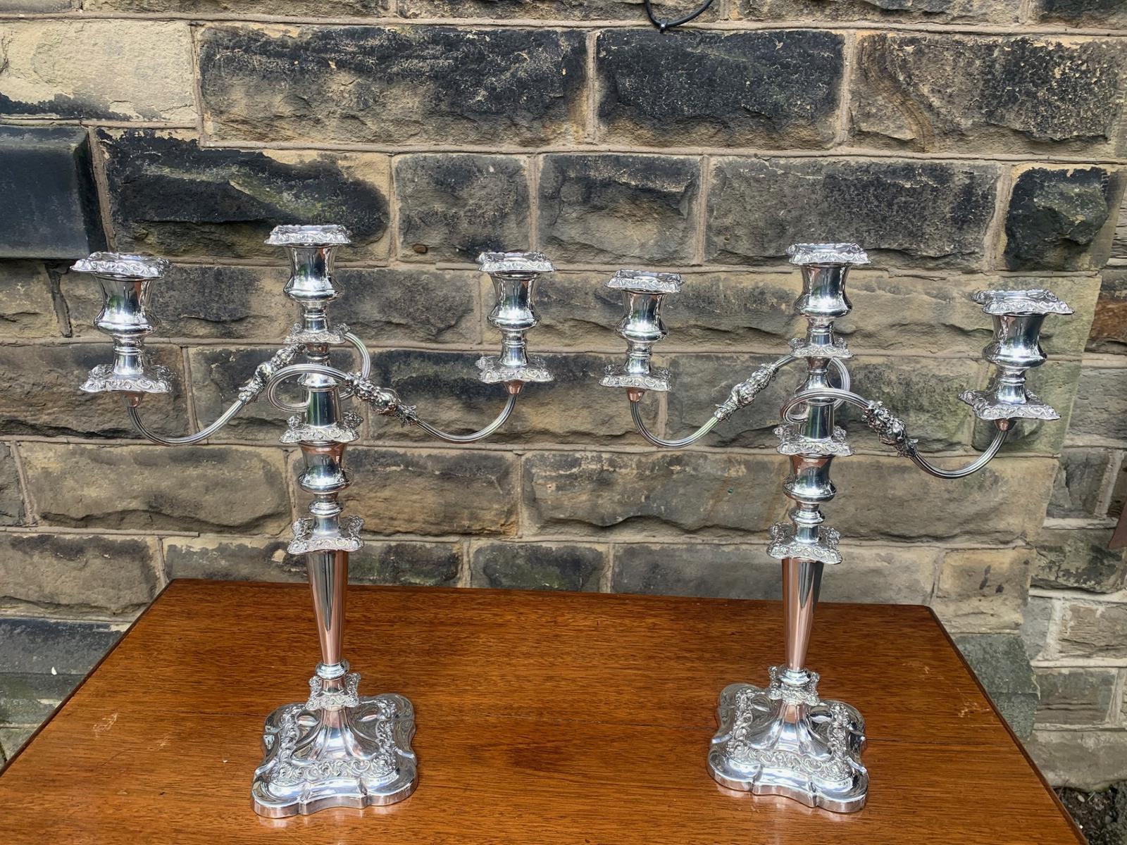 Pair of Antique Silver Plated 3 Branch Candelabra