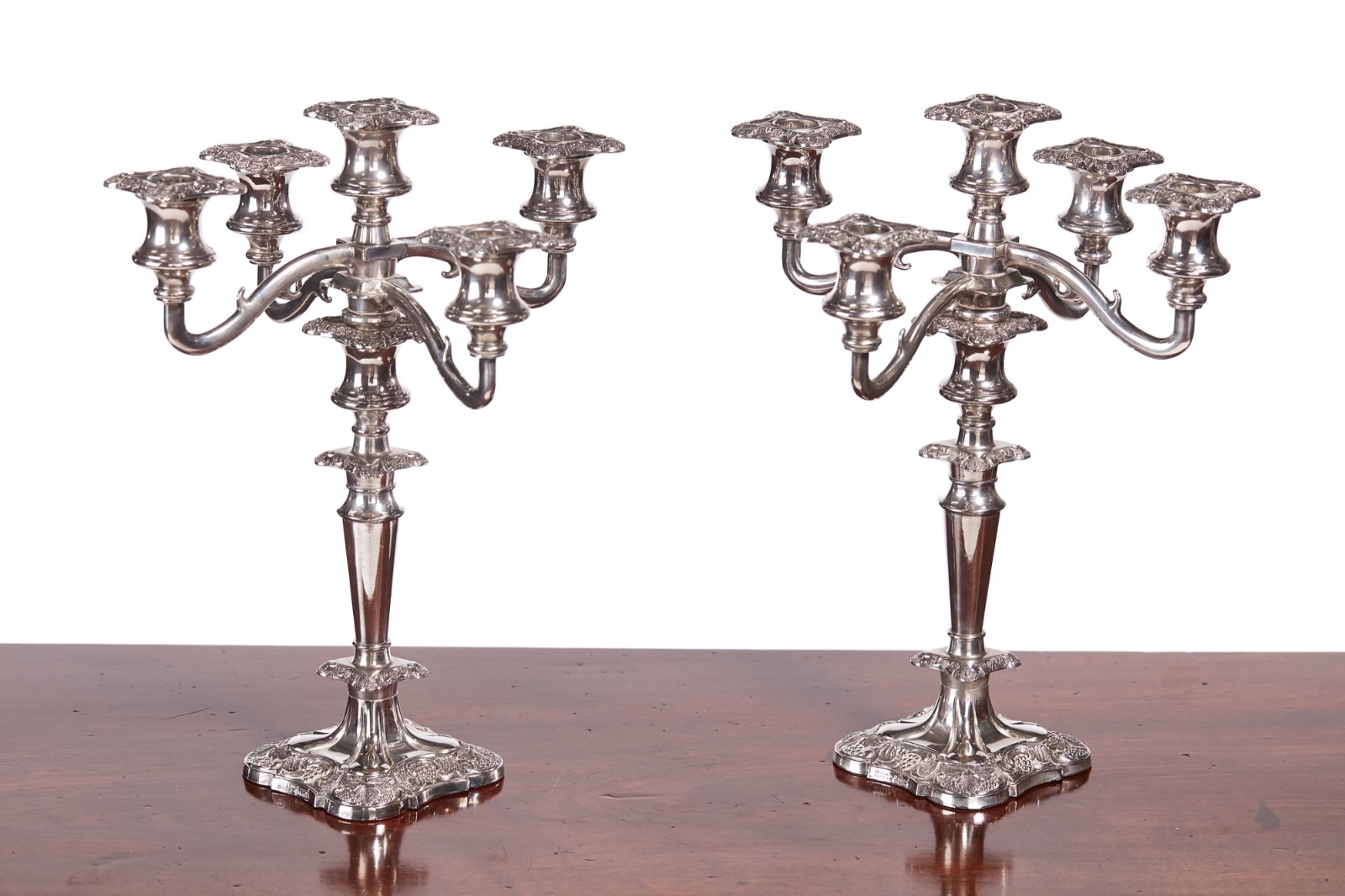Pair of Antique Silver Plated 5 Branch Candelabras c.1910