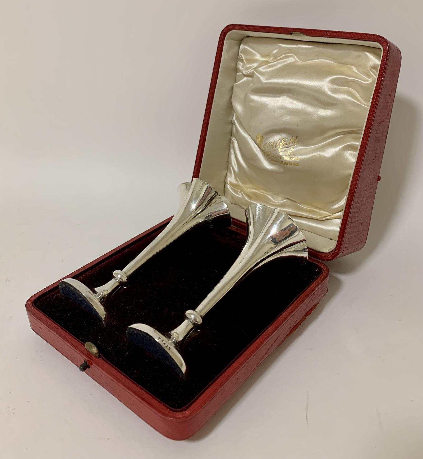 Pair of Antique Silver Trumpet Vases in Box