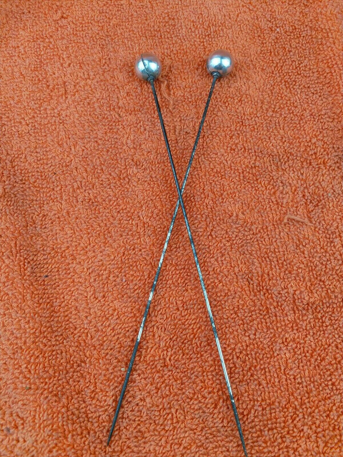 Pair of Antique Sterling Silver Ball Ended Hat Pins 7 Inches C1890