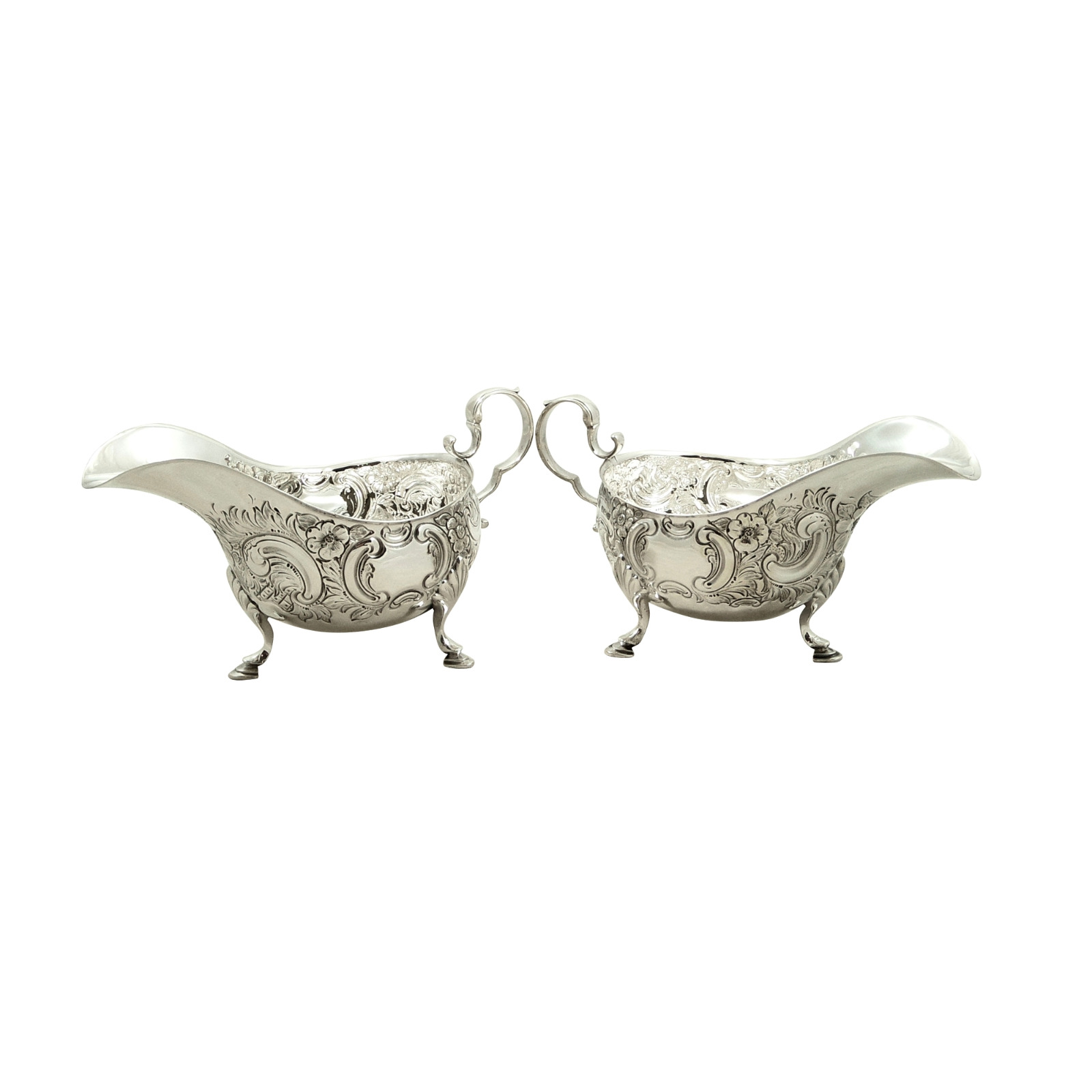 Pair of Antique Sterling Silver Gravy Boats / Sauce Jugs 1912