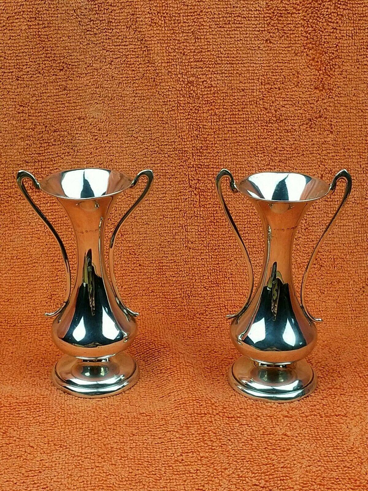 Pair of Antique Sterling Silver Hallmarked Art Nouveau Vases