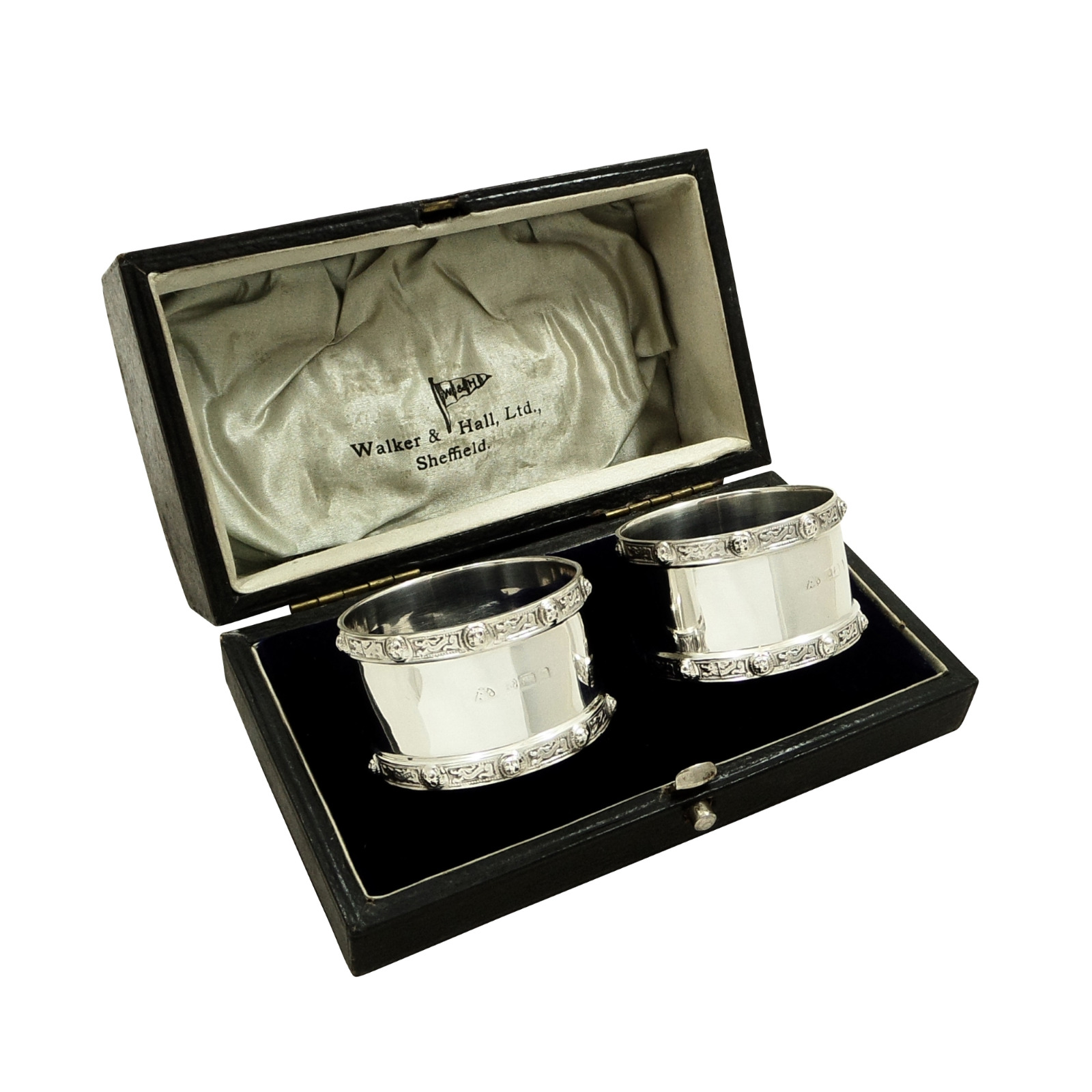 Pair of Antique Sterling Silver Napkin Rings in Case 1949