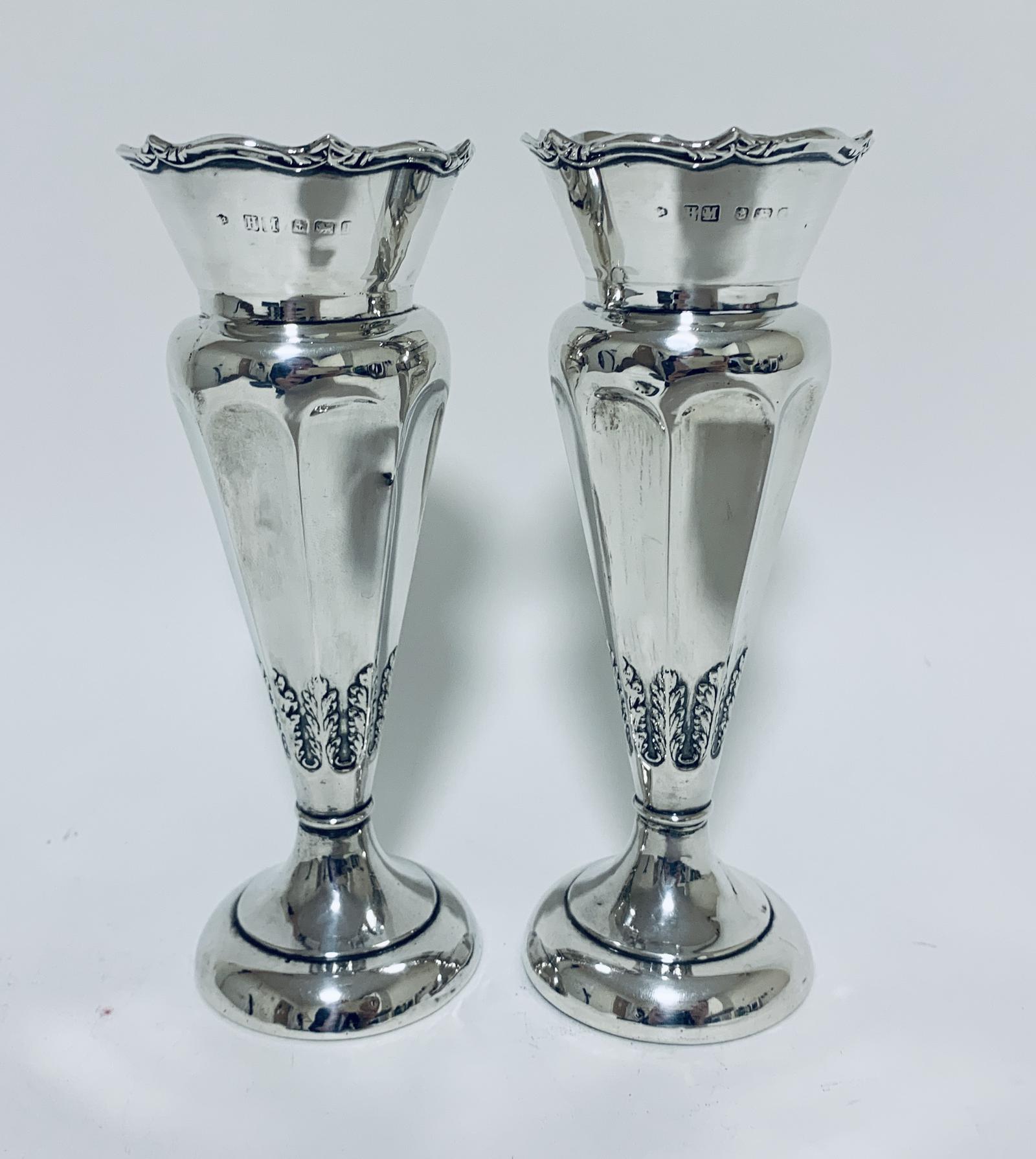 Pair of Antique Sterling Silver Trumpet Shaped Vases (1 of 12)