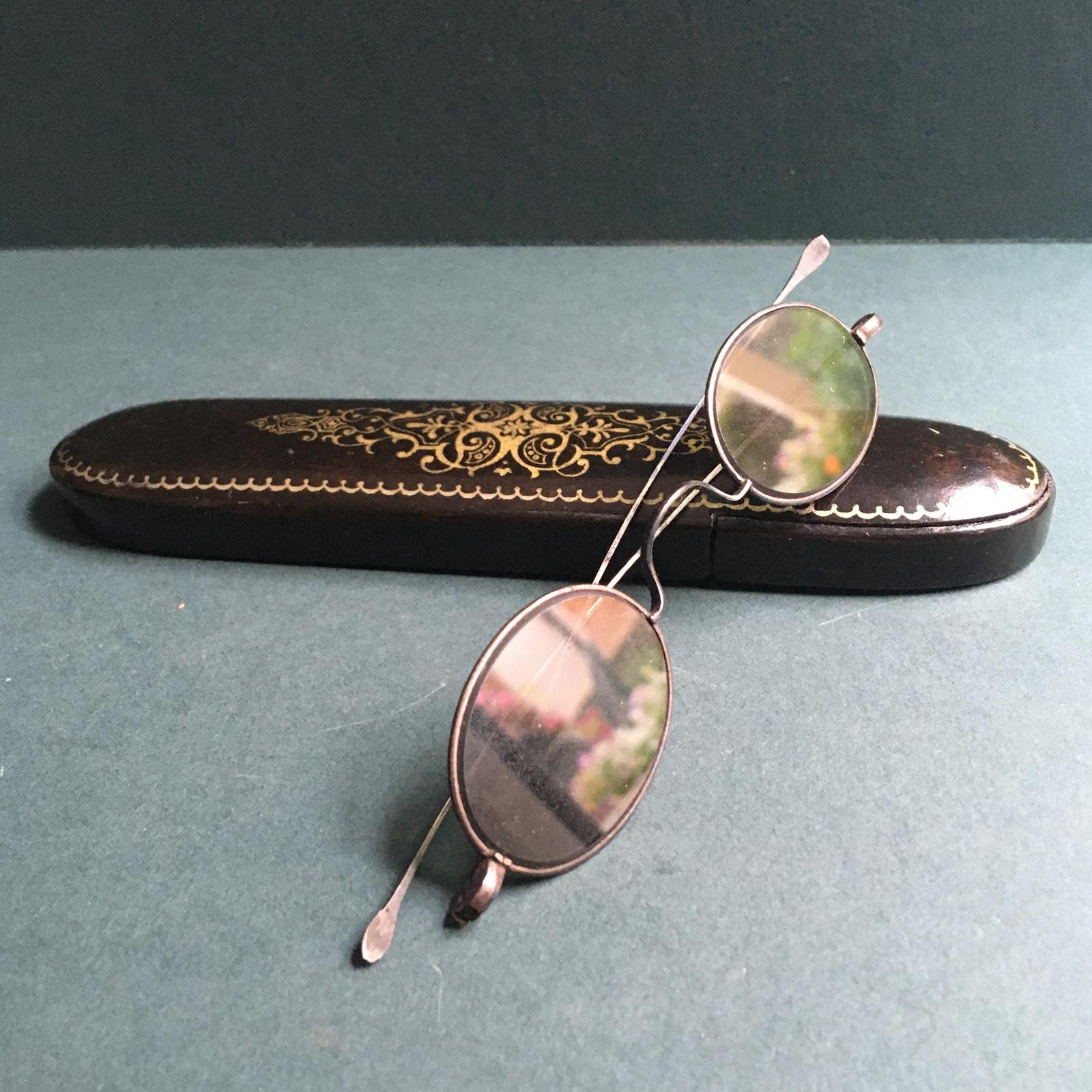 Pair of Antique Sunglasses in Beautiful Lacquered Papier Mache Case