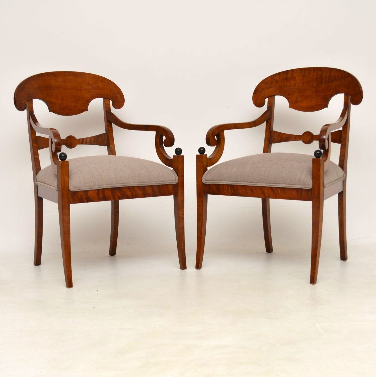 Pair of Antique Swedish Biedermeier Satin Birch Armchairs