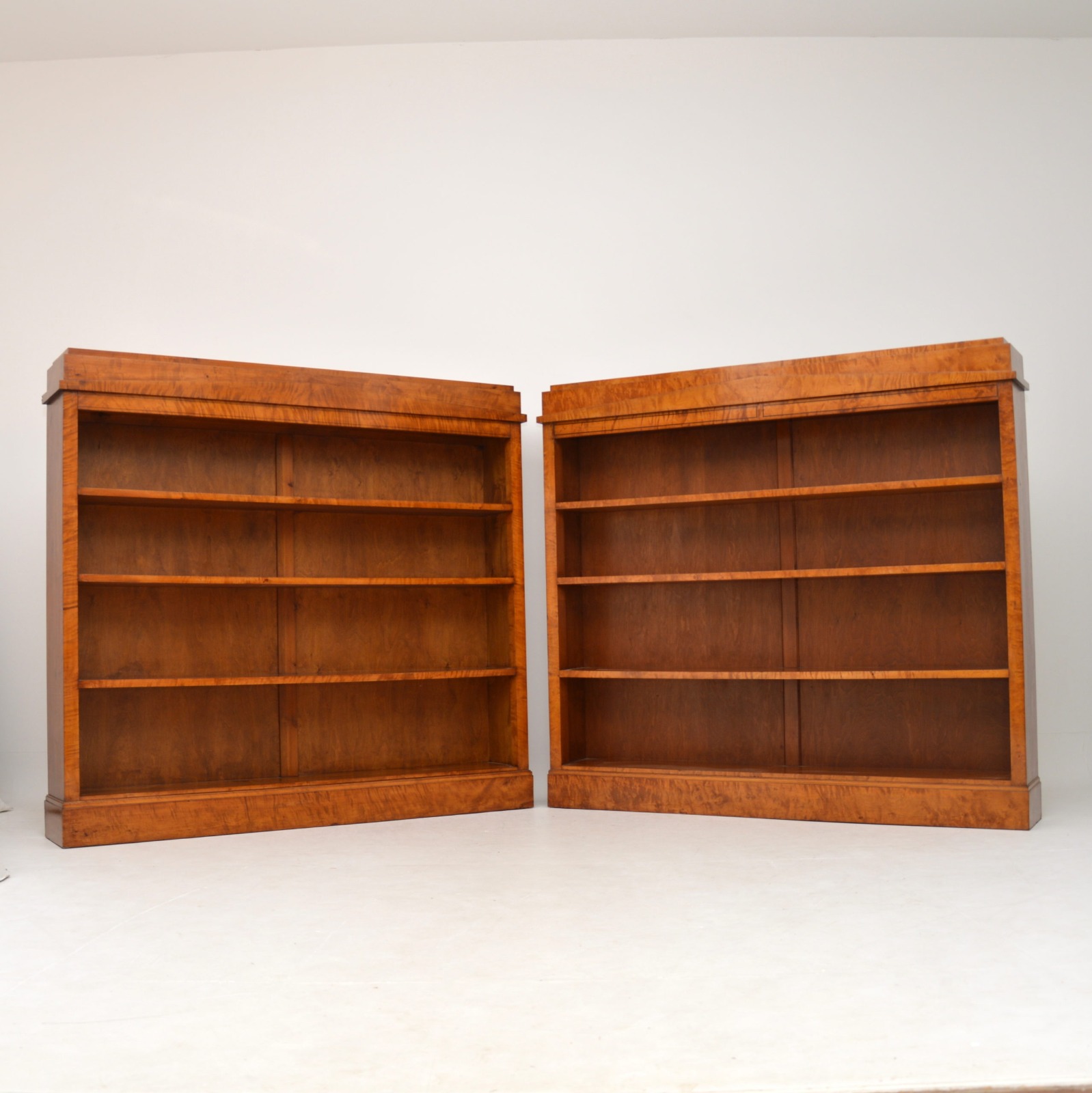 Pair of Antique Swedish Biedermeier Satin Birch Open Bookcases
