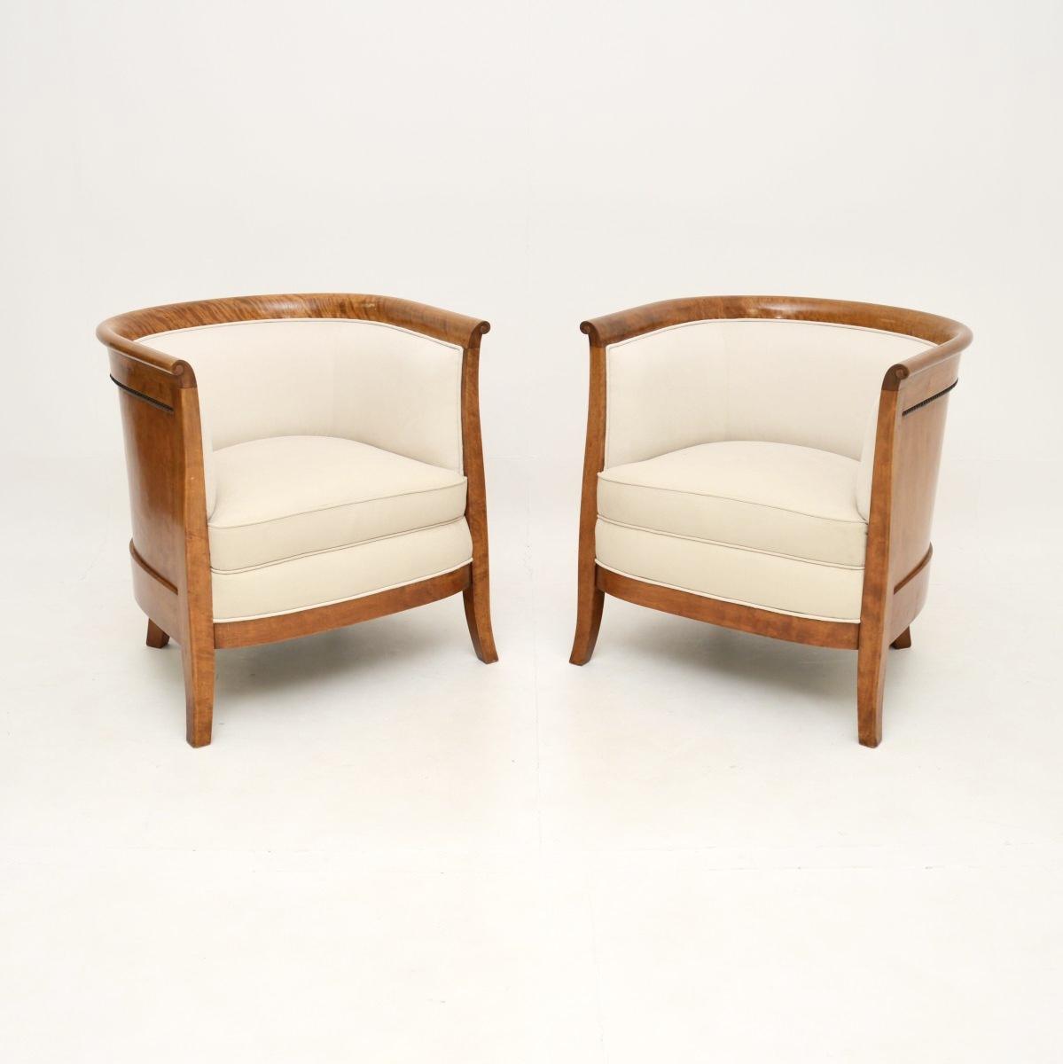 Pair of Antique Swedish Biedermeier Satinwood Armchairs