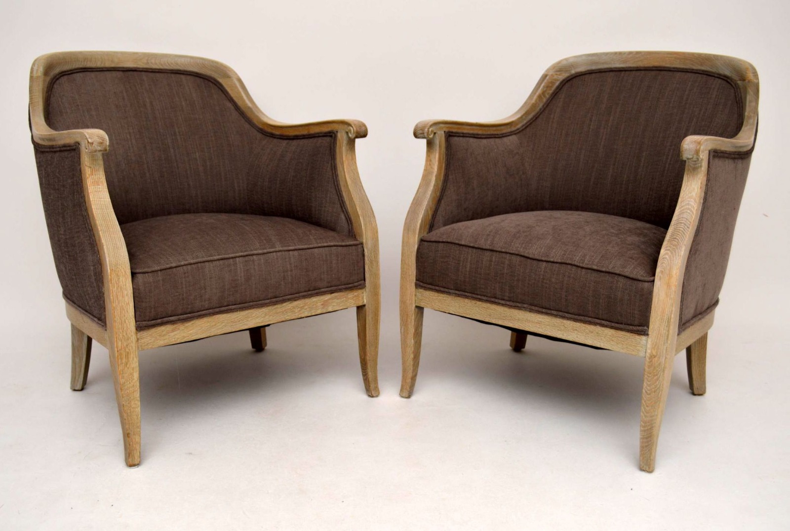 Pair of Antique Swedish Bleached Oak Upholstered Armchairs C.1910