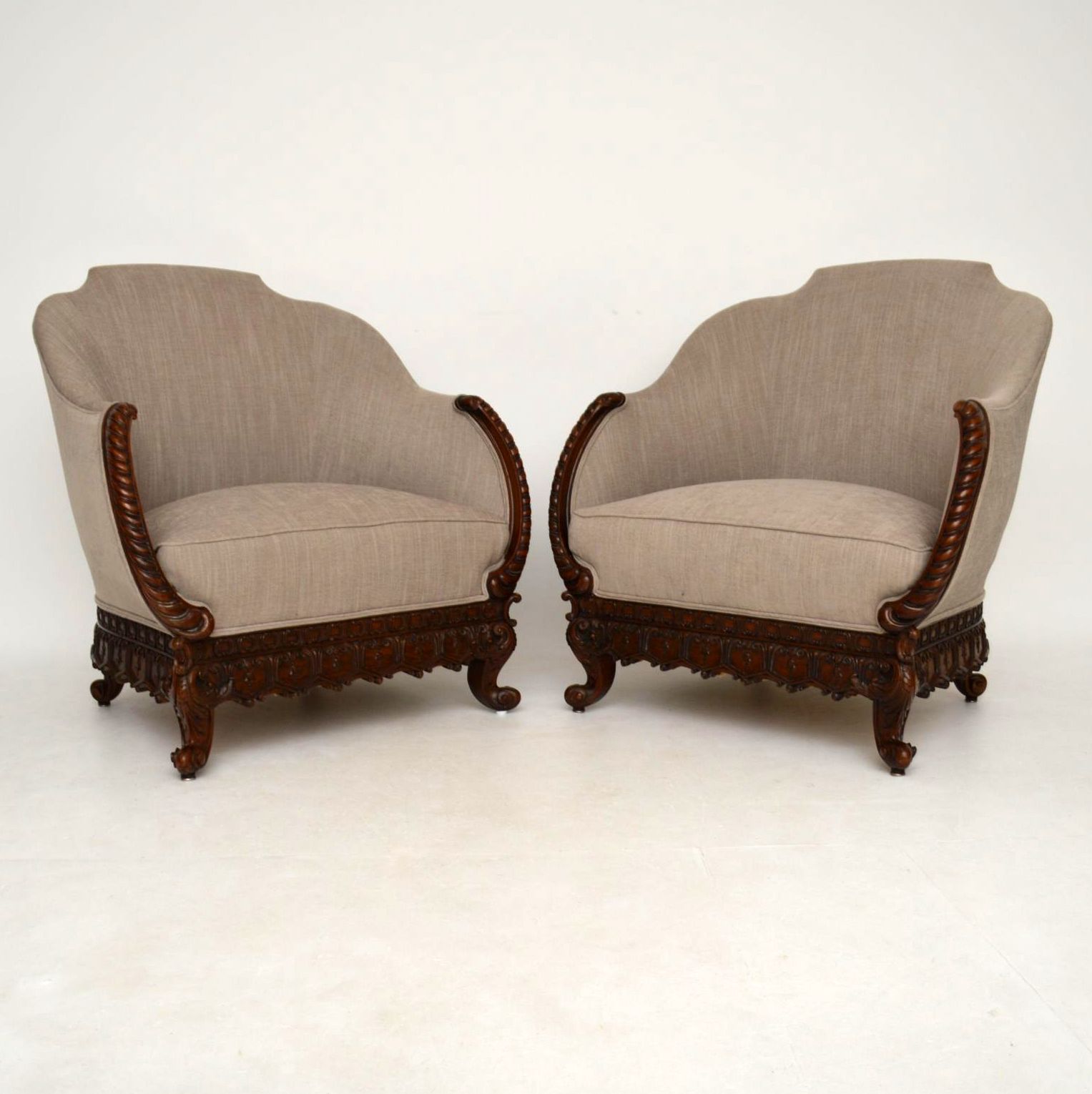 Pair of Antique Swedish Carved Mahogany Armchairs