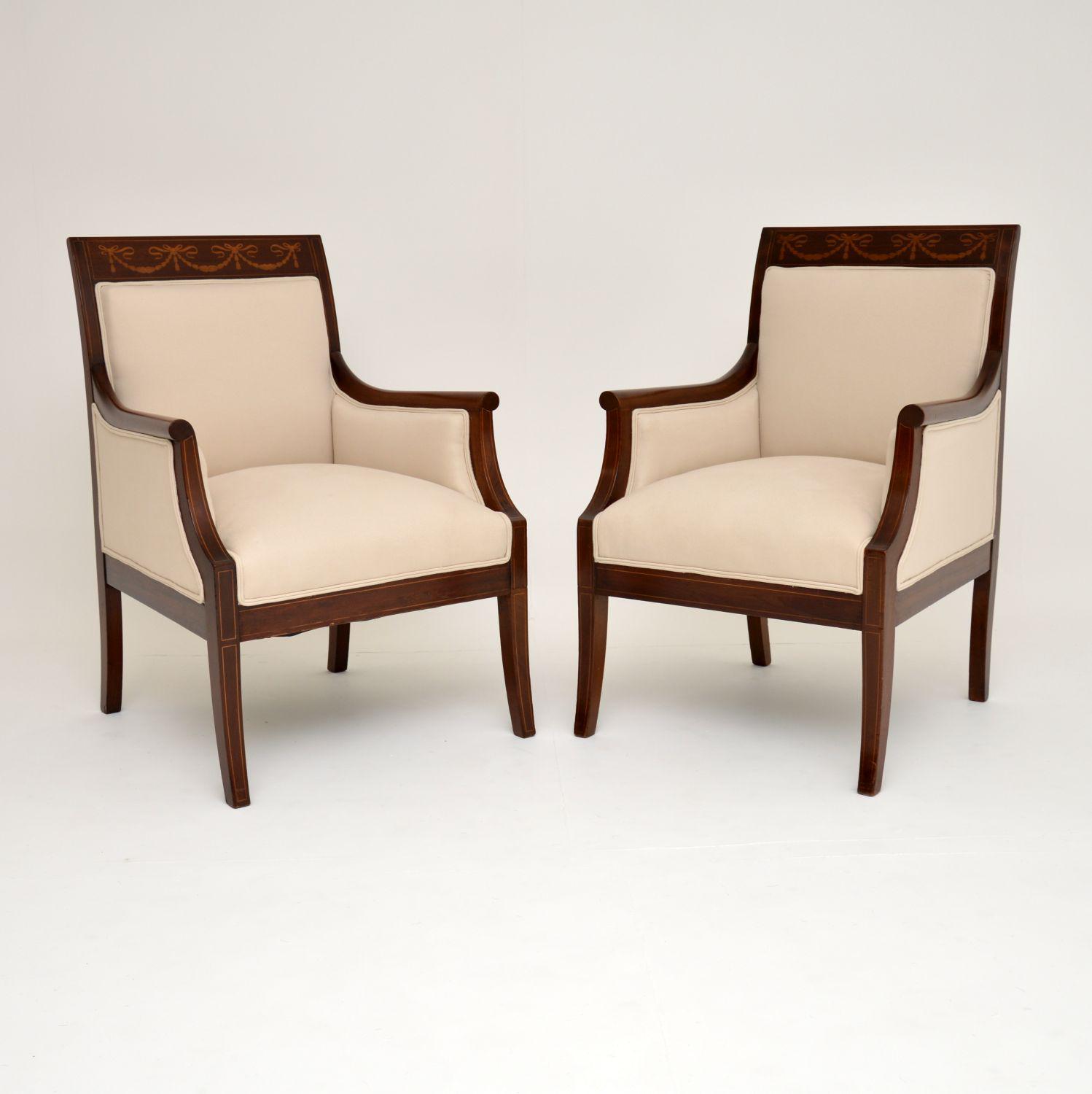 Pair of Antique Swedish Inlaid Mahogany Armchairs