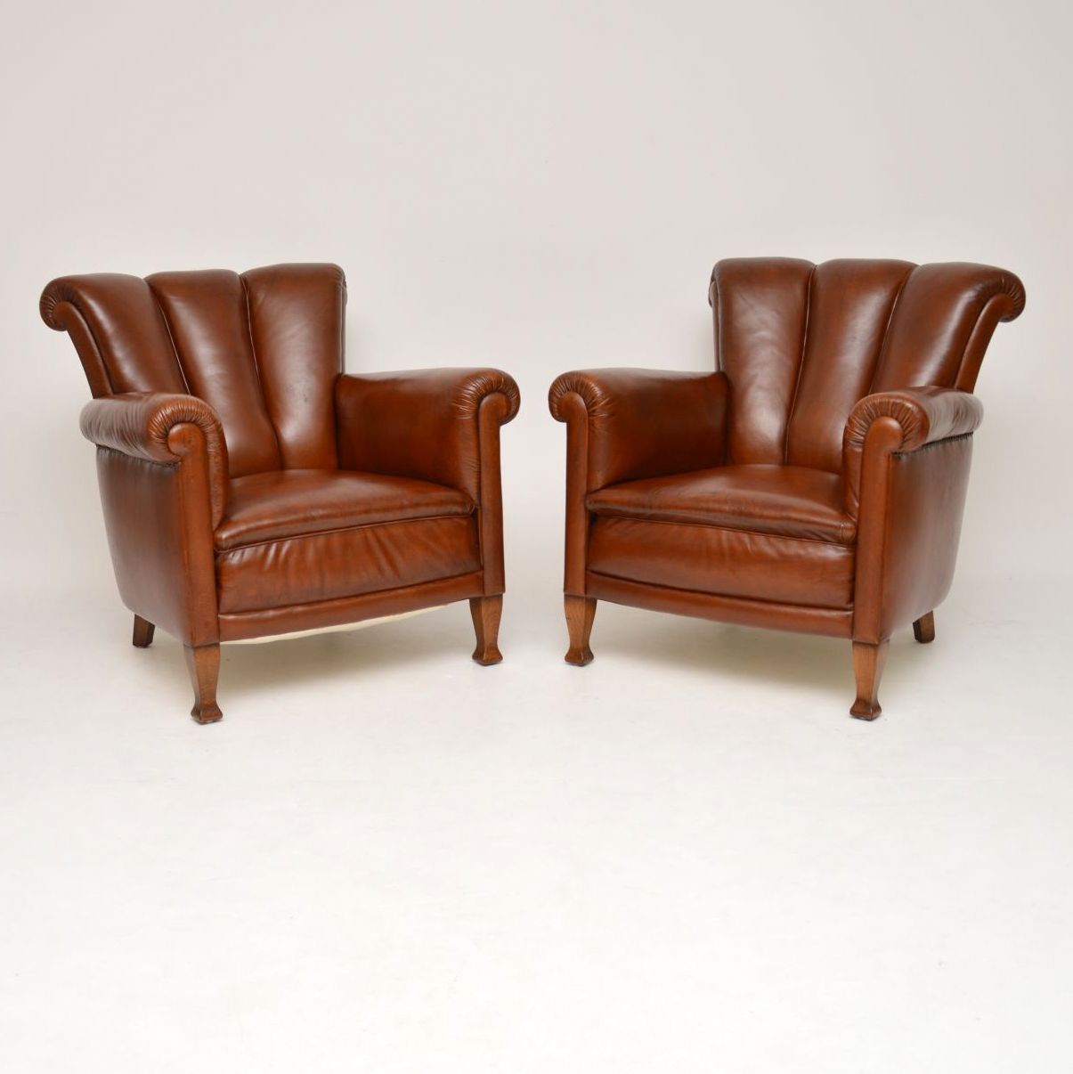 Pair of Antique Swedish Leather Armchairs (1 of 1)