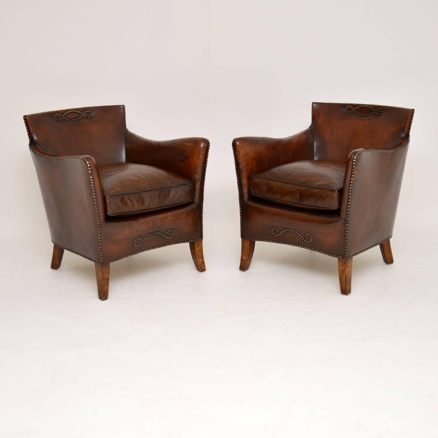 Pair of Antique Swedish Leather Armchairs (1 of 12)