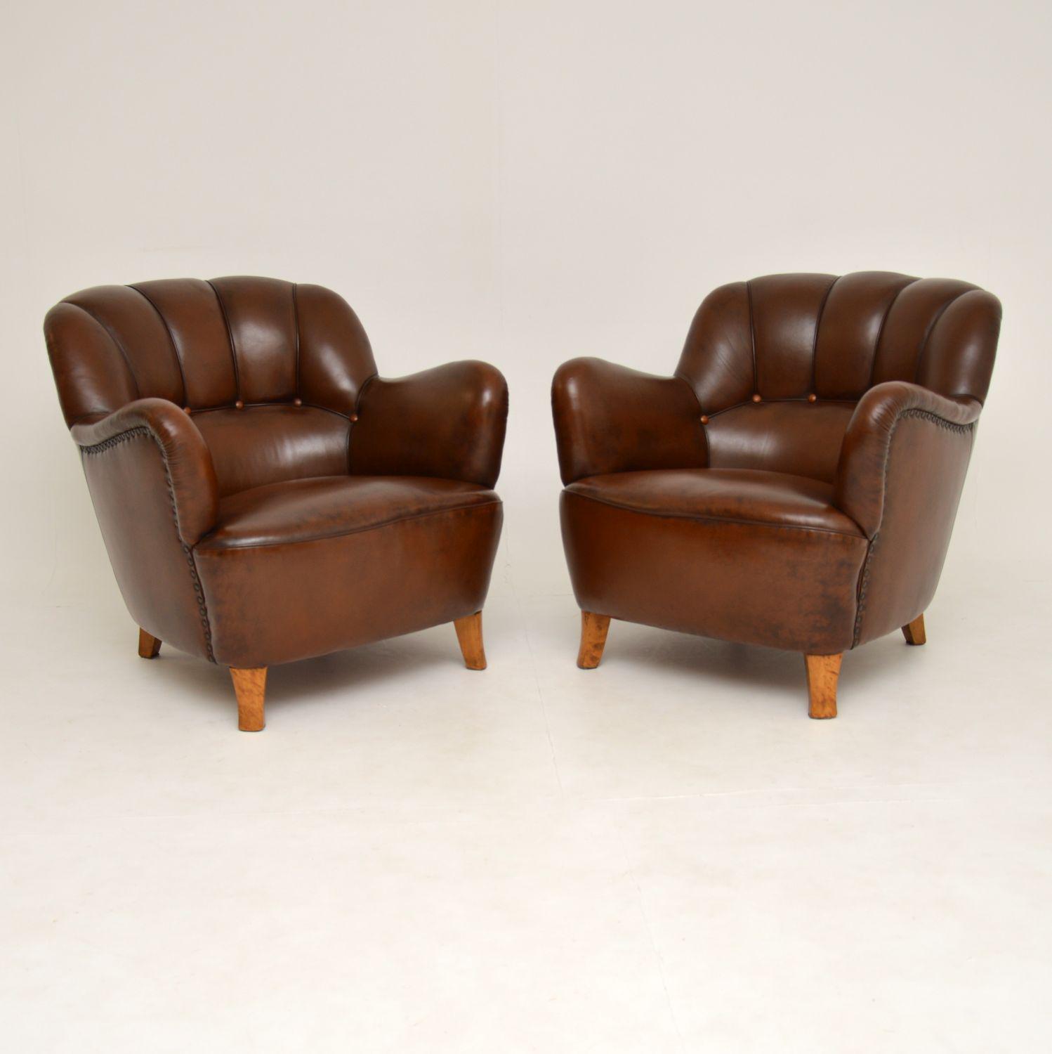 Pair of  Antique Swedish Leather Armchairs (1 of 12)