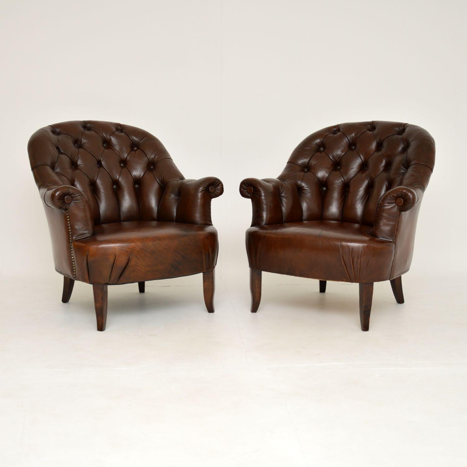 Pair of Antique Swedish Leather   Armchairs (1 of 9)