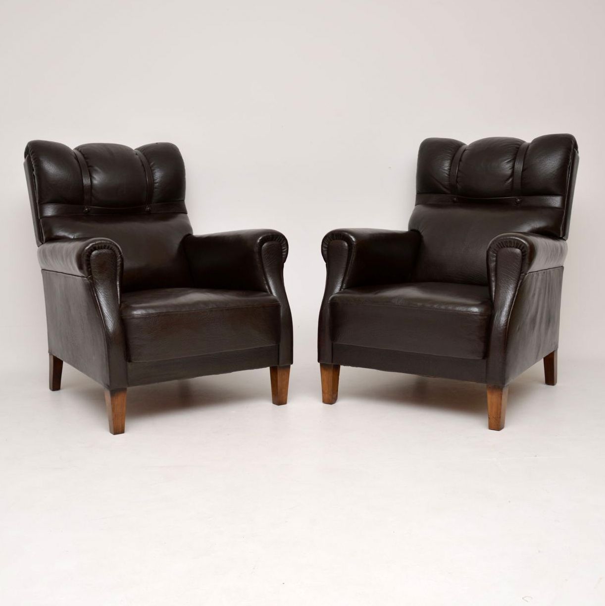 Pair of Antique Swedish Leather Armchairs C.1900 (1 of 10)