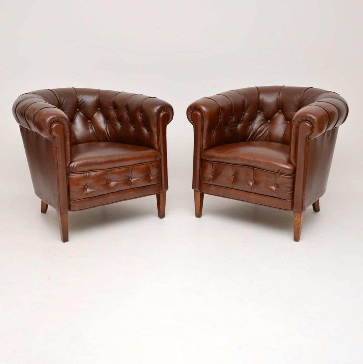 Pair of Antique Swedish Leather Armchairs c.1910 (1 of 1)