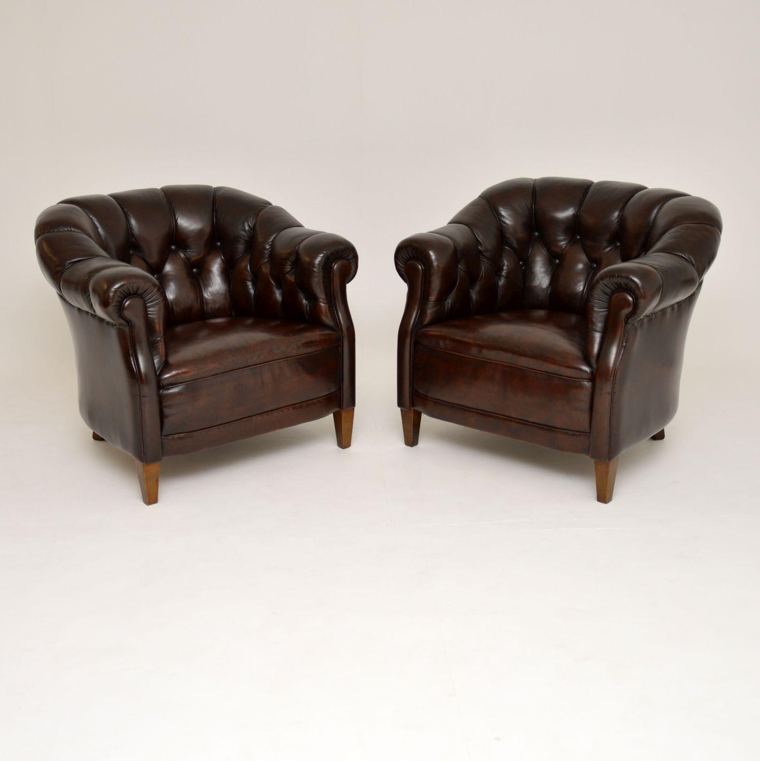 Pair of Antique Swedish Leather Club Armchairs (1 of 8)