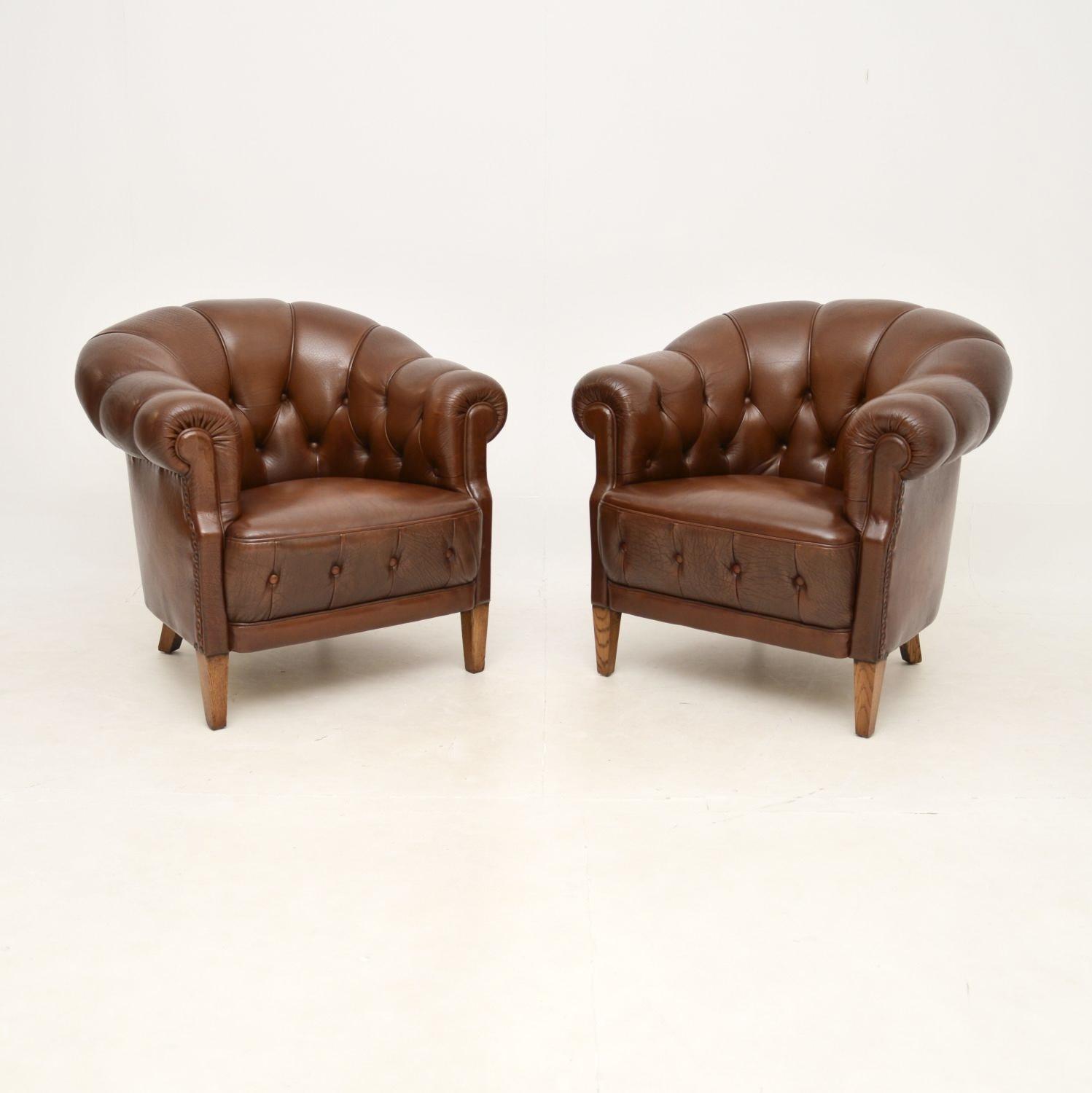 Pair of Antique Swedish Leather Club Armchairs (1 of 7)