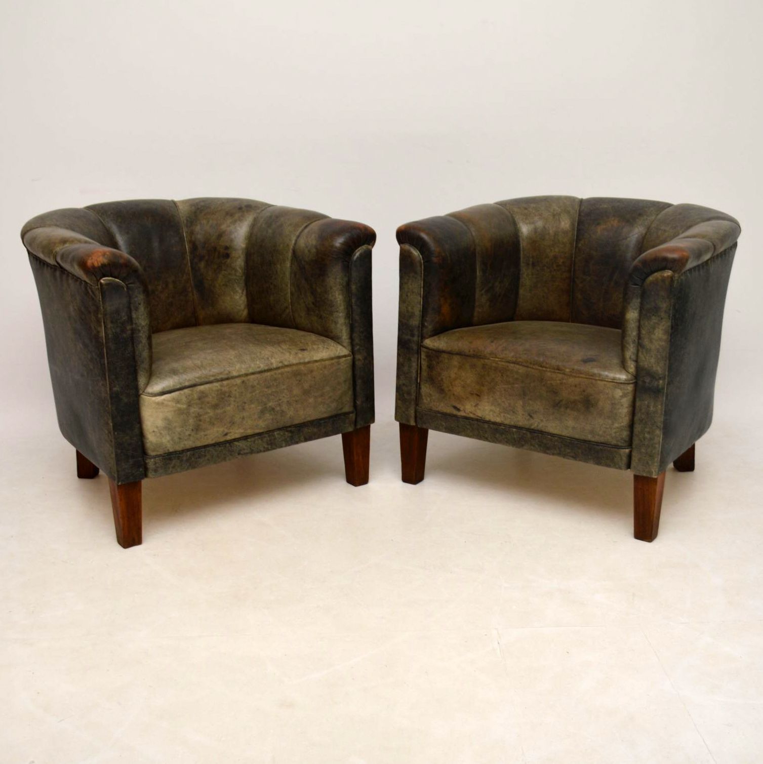 Pair of Antique Swedish Leather Tub Armchairs (1 of 1)
