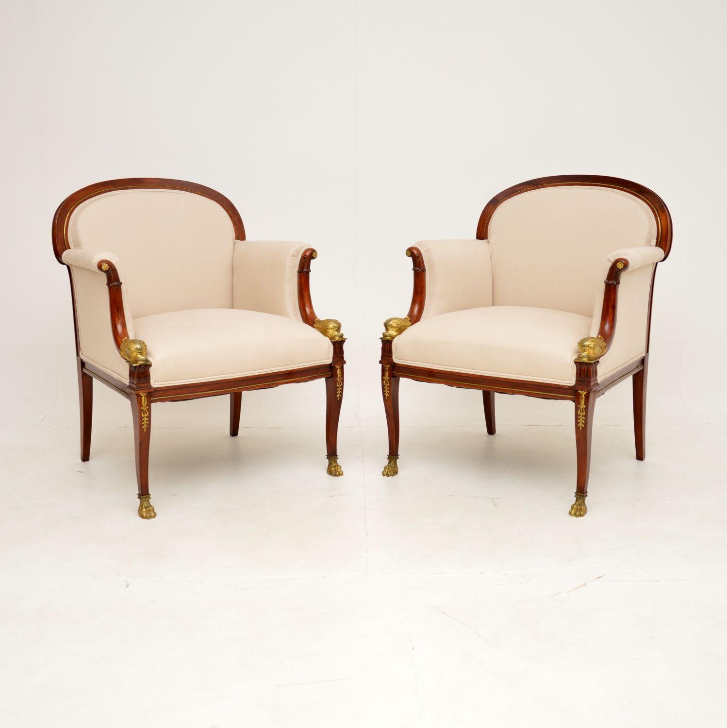 Pair of Antique Swedish Mahogany & Brass Armchairs (1 of 11)