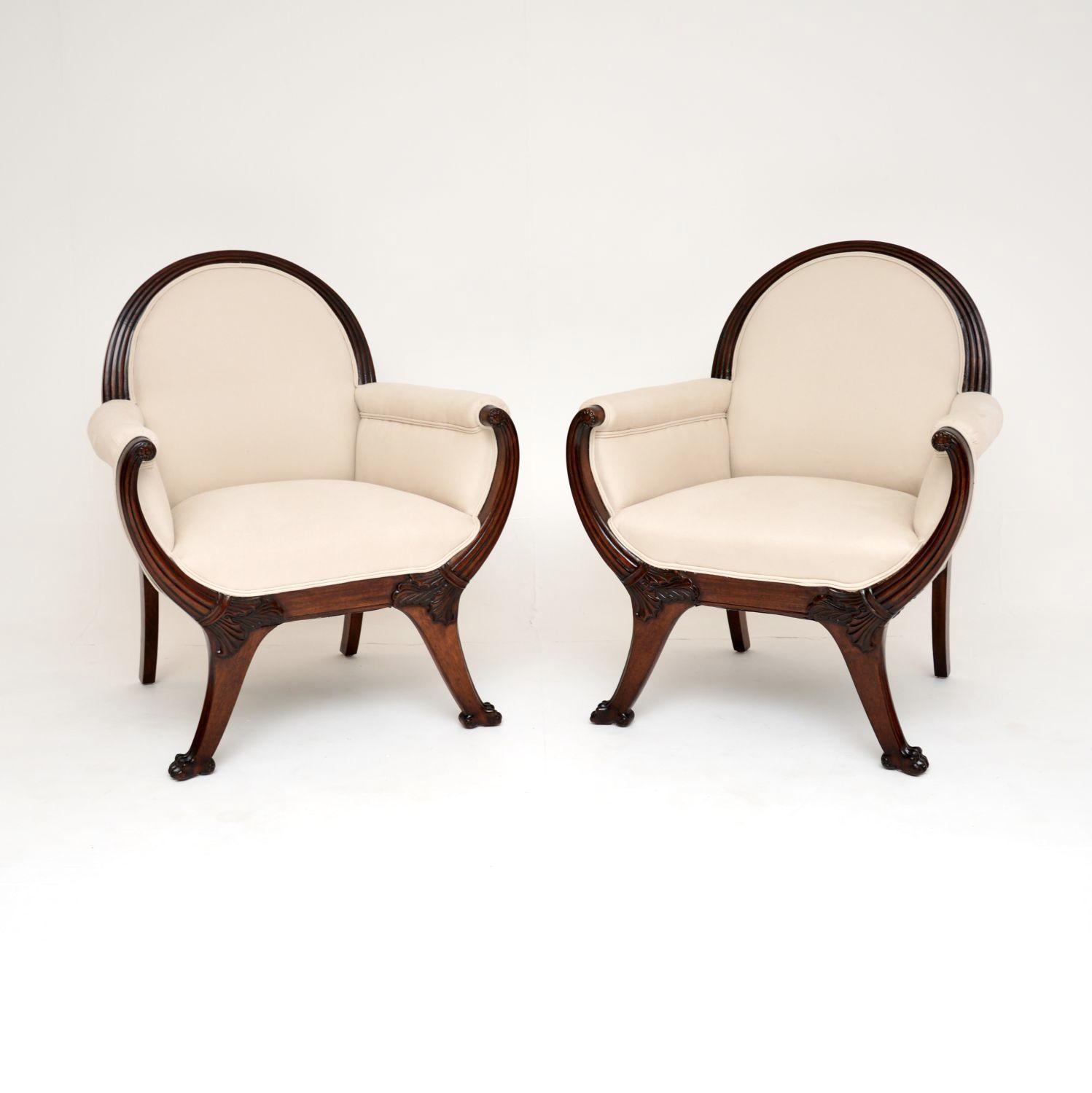Pair of Antique Swedish Mahogany Gondola Armchairs (1 of 9)