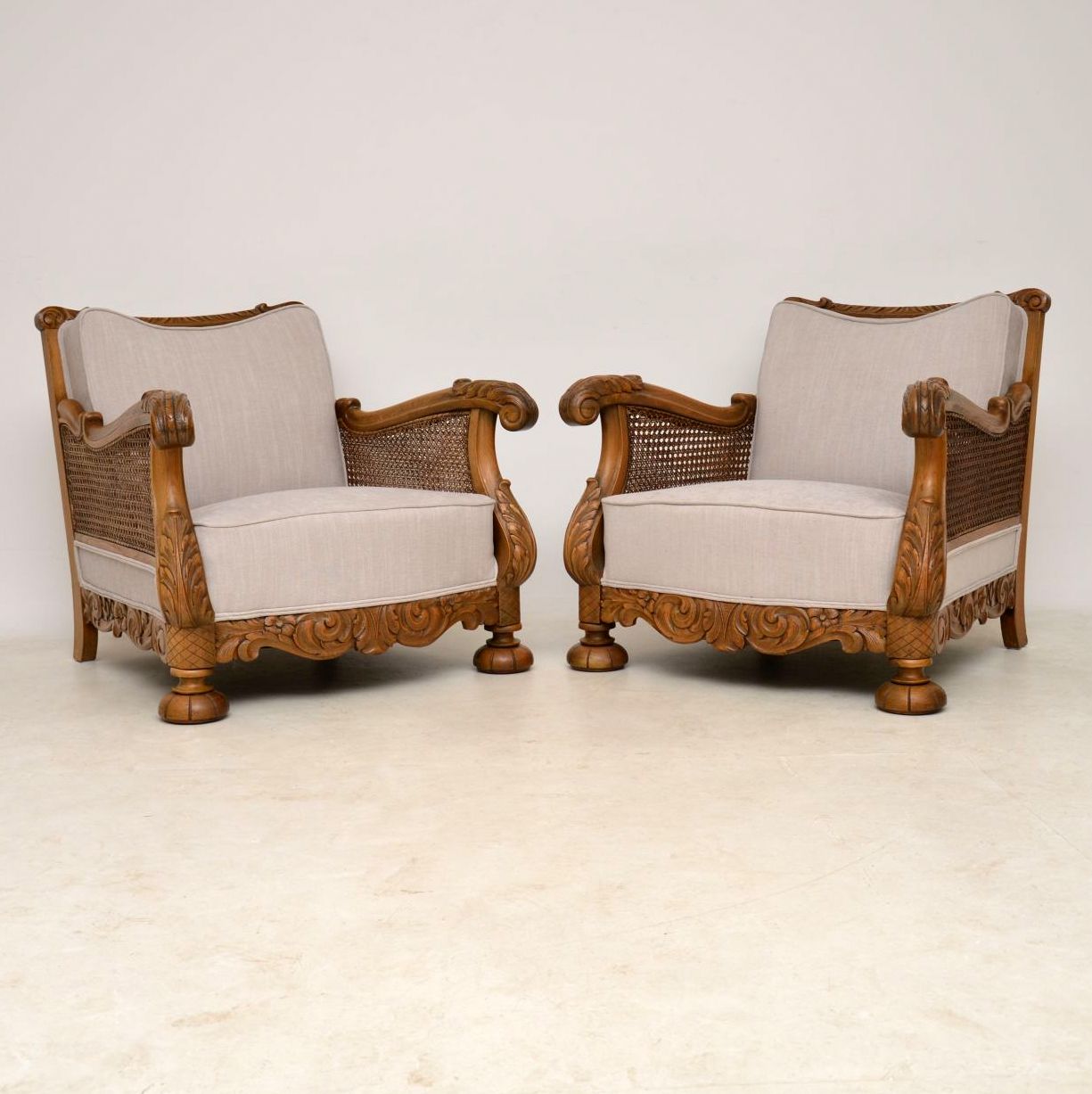 Pair of Antique Swedish Oak Bergere Armchairs c.1880 (1 of 1)
