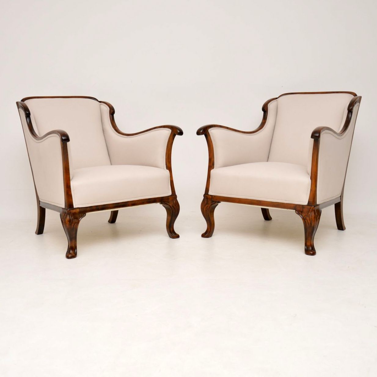 Pair of Antique Swedish Satin Birch Armchairs
