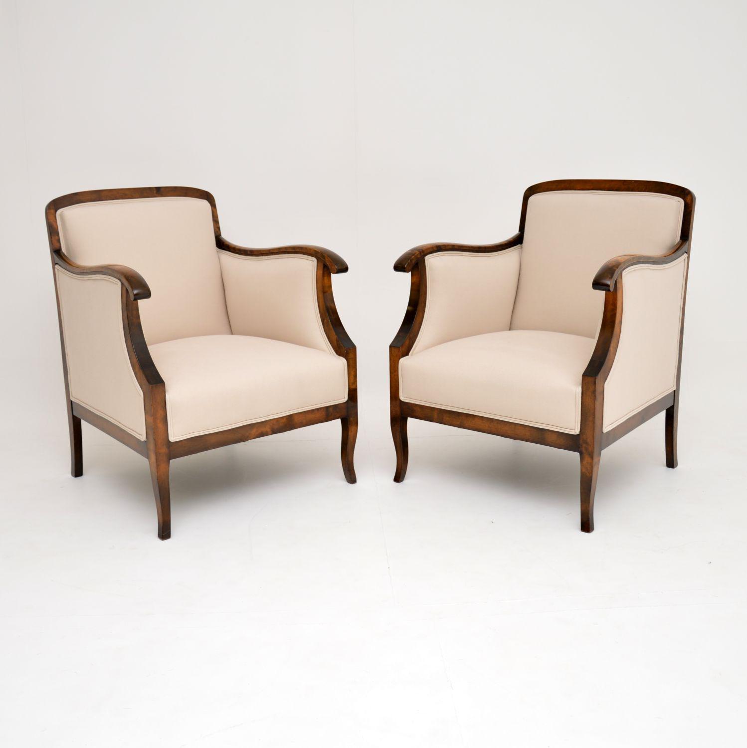 Pair of Antique Swedish Satin Birch Armchairs