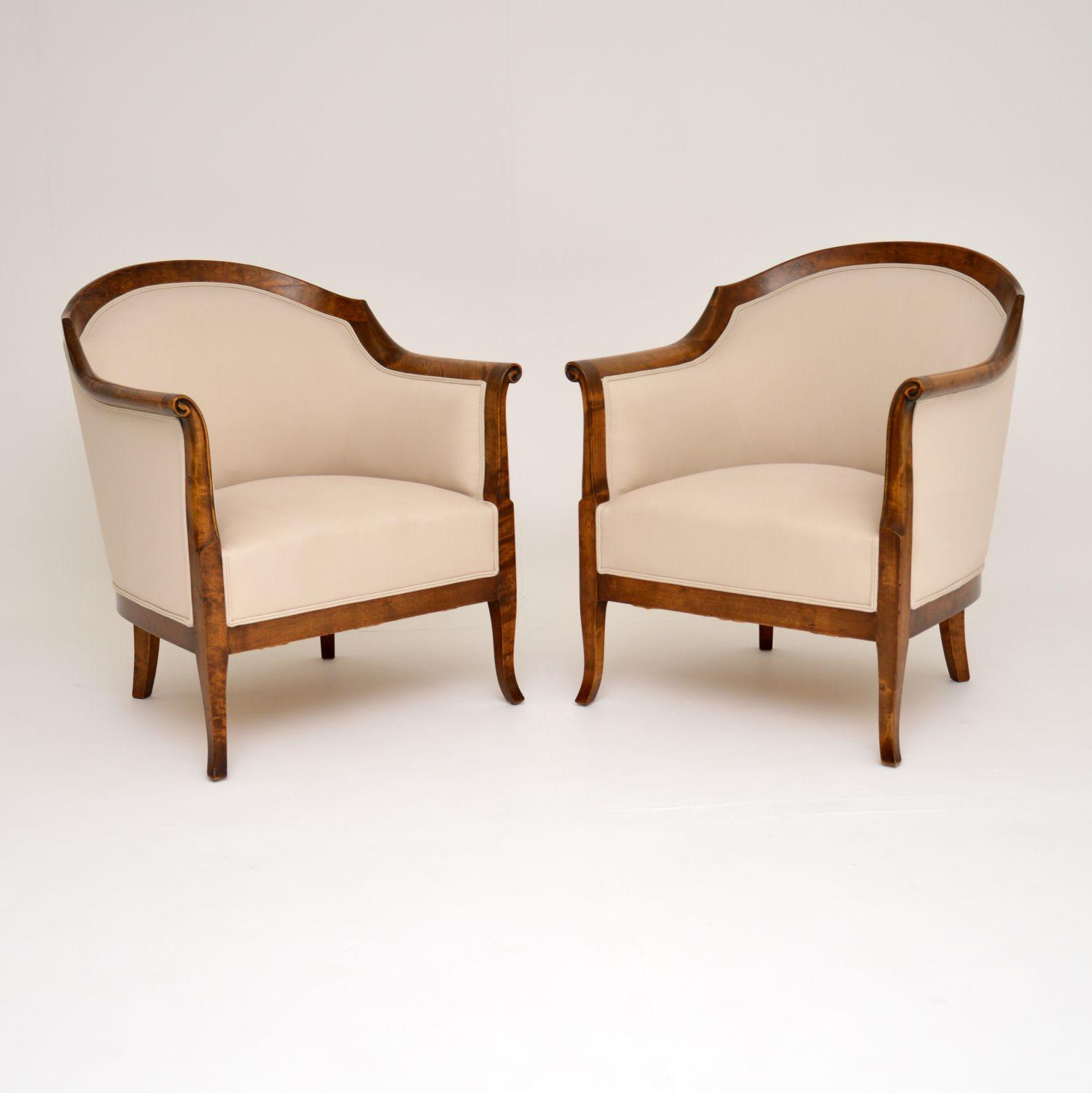 Pair of  Antique  Swedish Satin Birch  Armchairs (1 of 12)