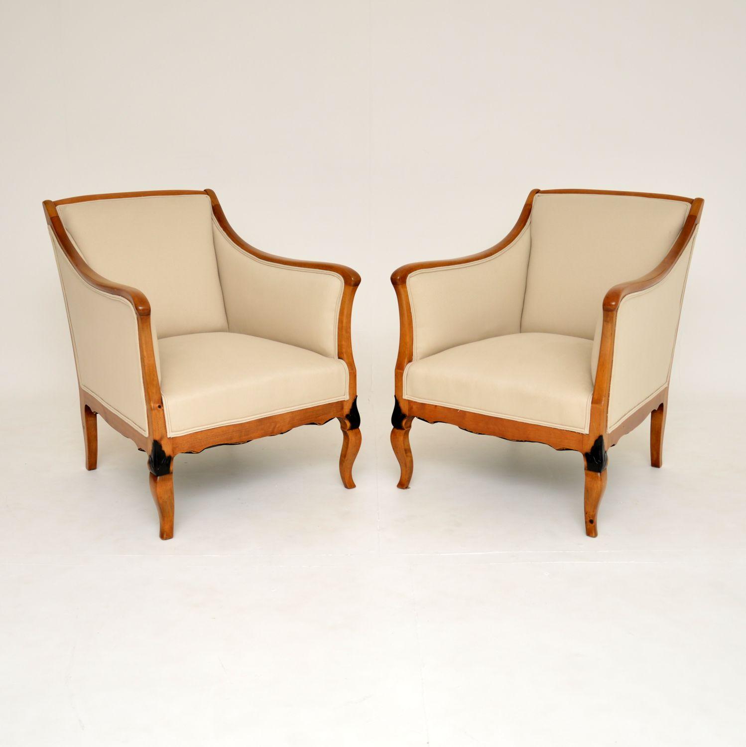 Pair of Antique Swedish Satin Birch Armchairs
