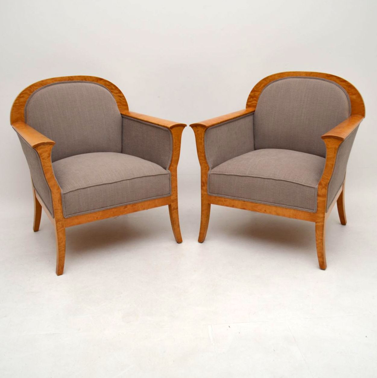Pair of Antique Swedish Satin Birch Armchairs (1 of 1)